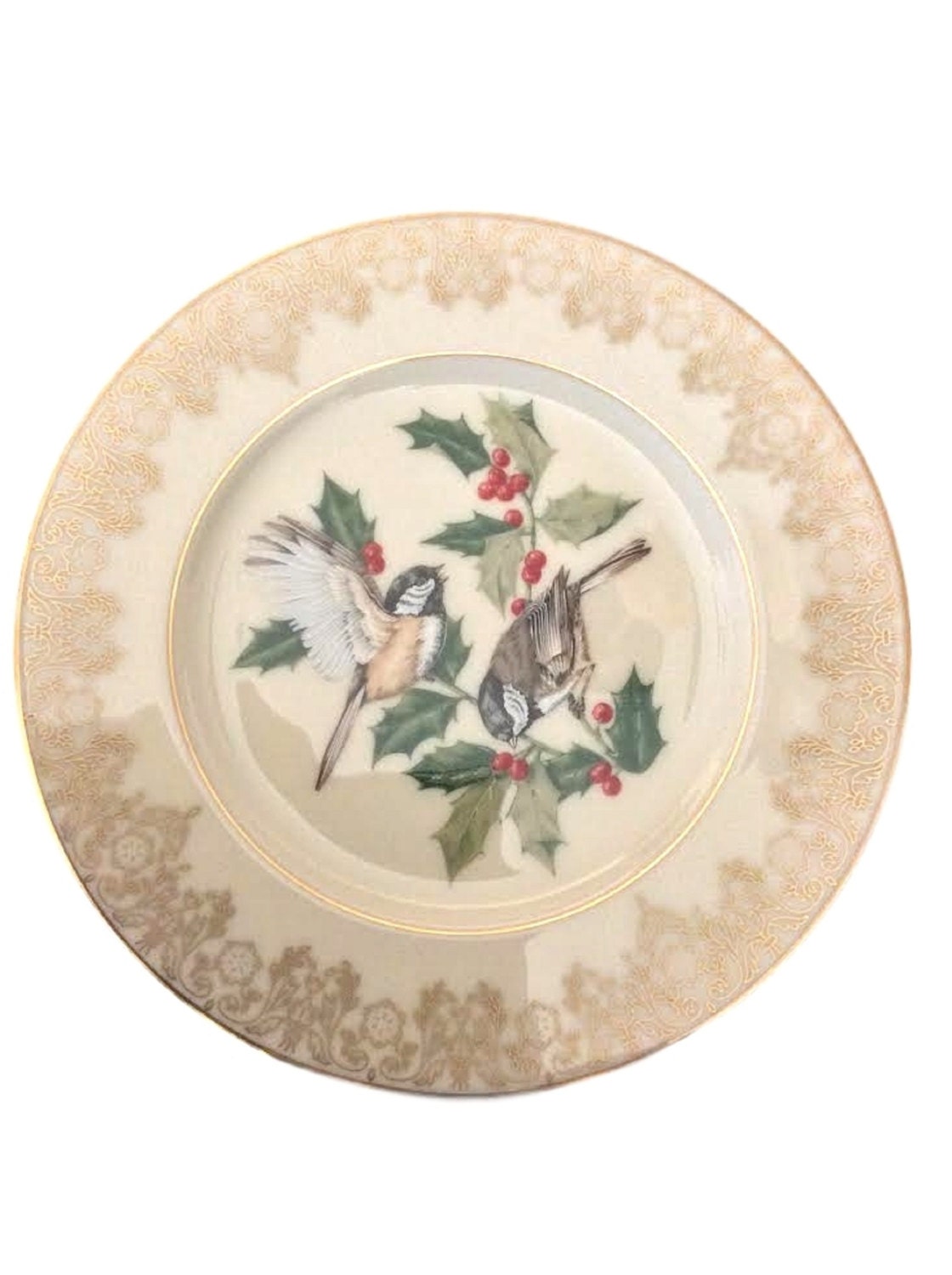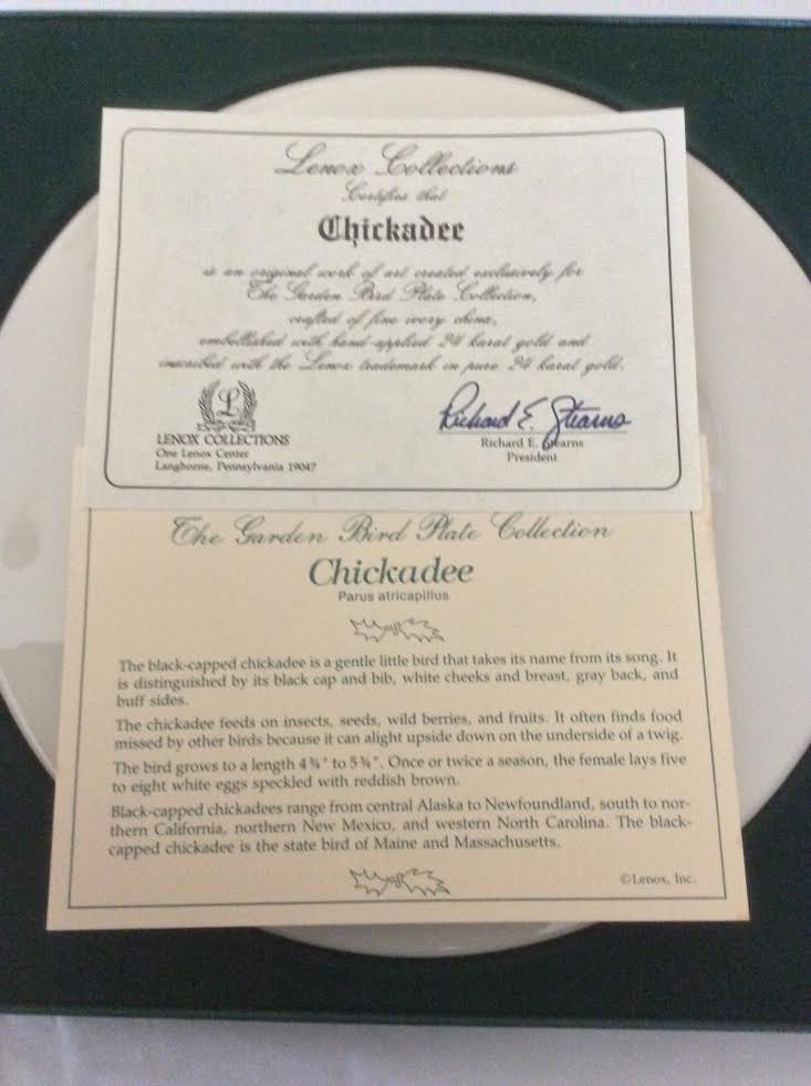 Lenox China Chickadee Plate: Garden Bird Collection, 24K Gold Accents