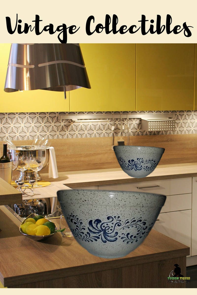 This is a 7" Mixing BOWL #402 . This vintage ceramic blue on beige bowl is in the HOMESTEAD pattern.