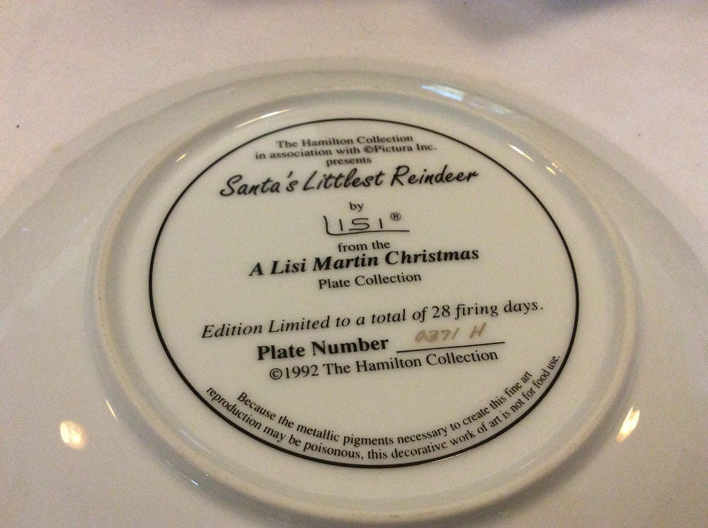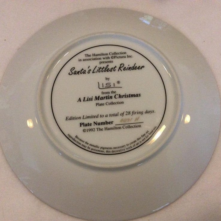 It's almost time for Christmas. You will want this great Santa's Littlest Reindeer plate from the Hamilton Collection with 24K gold trim. A Lisi Martin Collection.