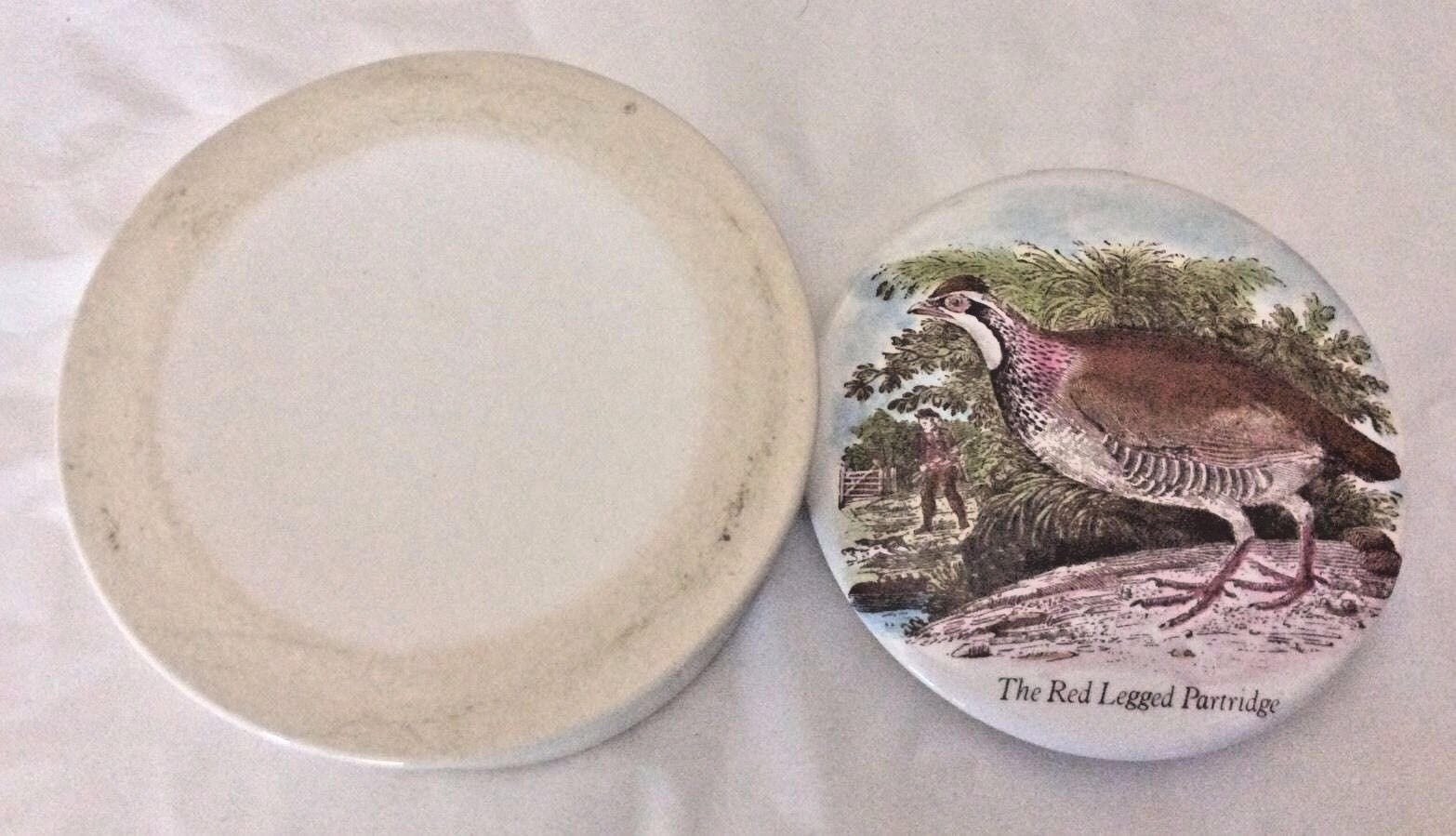 Staffordshire Covered Dish | Porcelain Powder Box for Red Legged Partridge | Vintage Candy Dish Decor