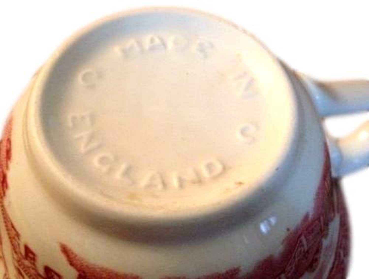 This transfer ware vintage cup measures 2.5 inches tall and 3.75 inches across the mouth. Marked "Made in England" on the bottom. In very good condition. Will combine shipping on multiple purchases.