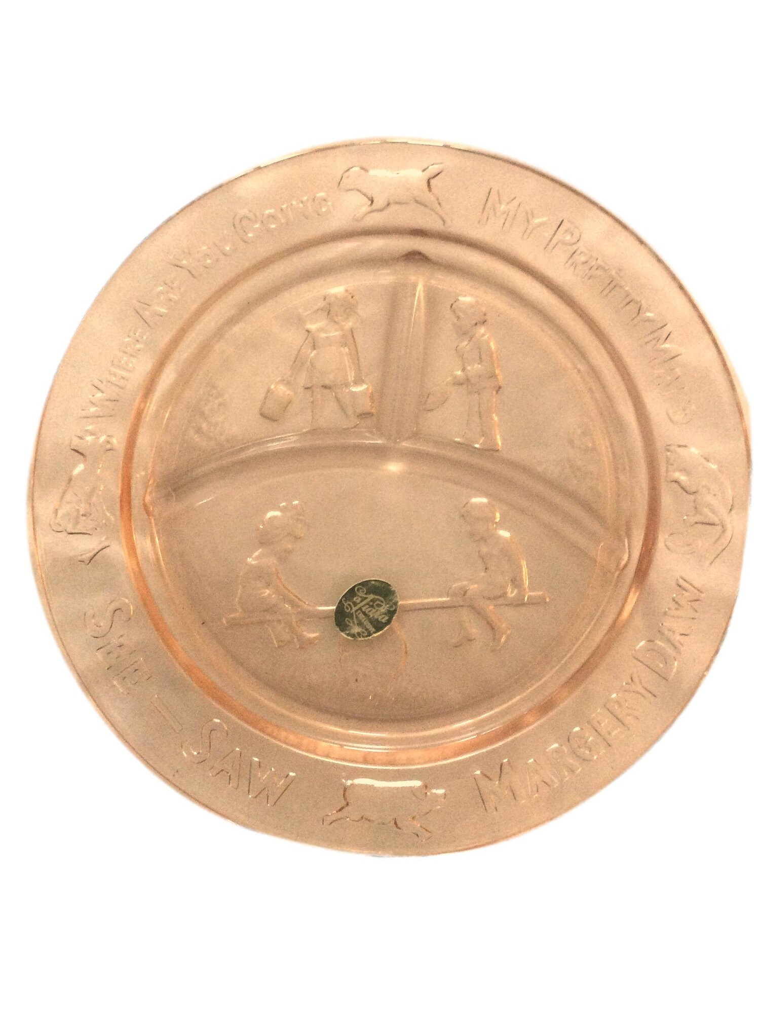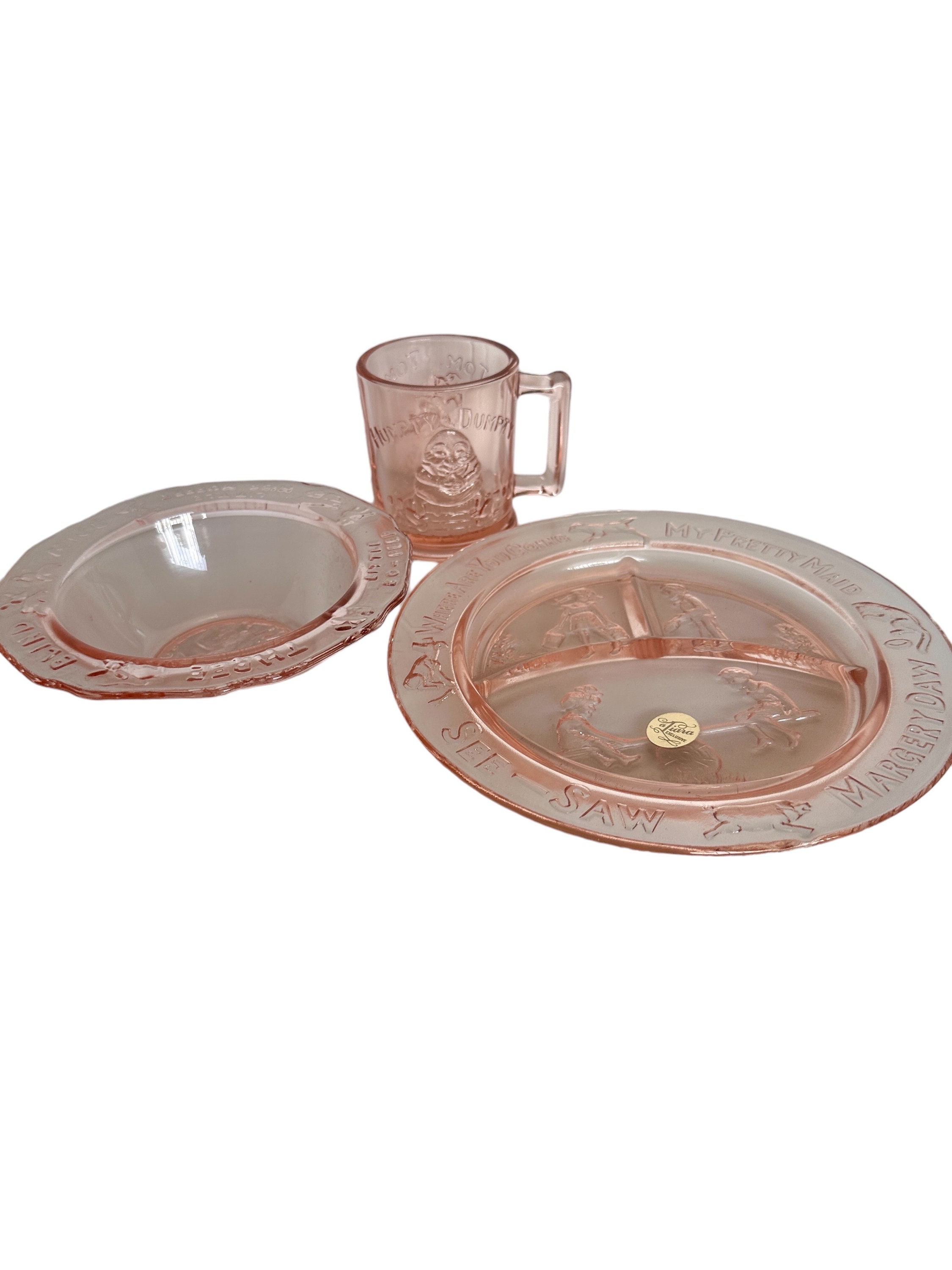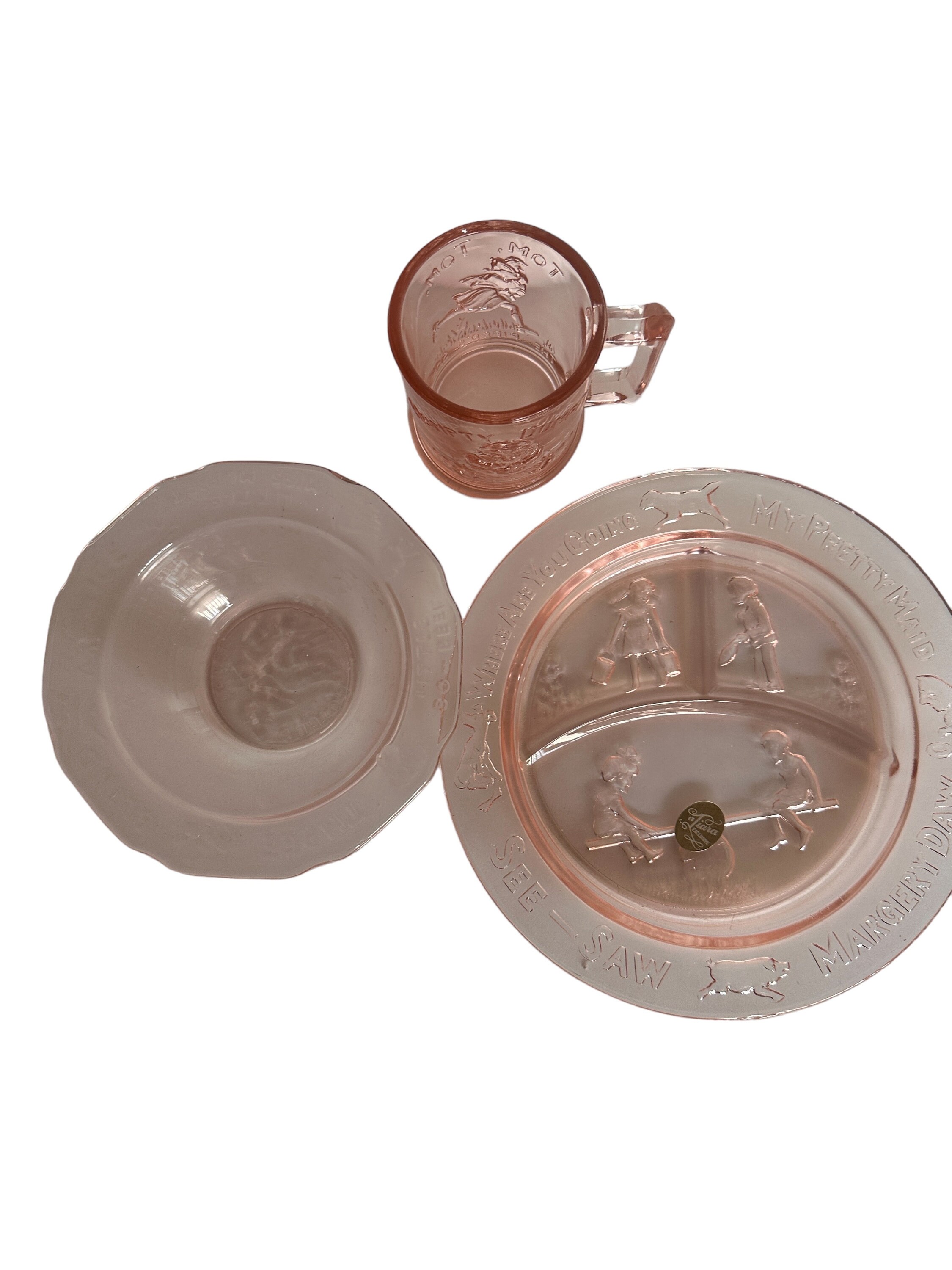 Indiana Glass For Children | Nursery Rhymes | Tiara Glass Pink | Divided Plate & Mug
