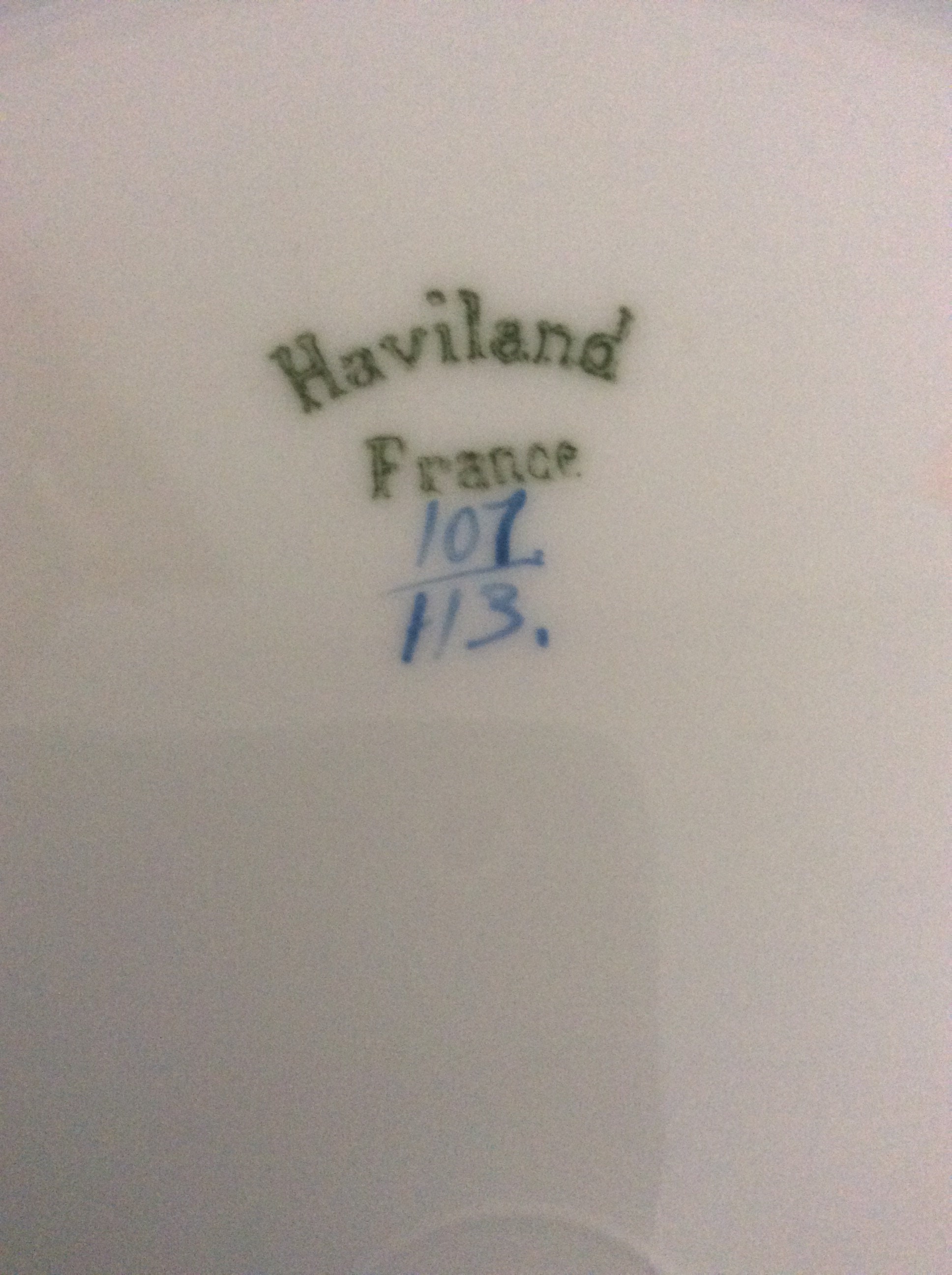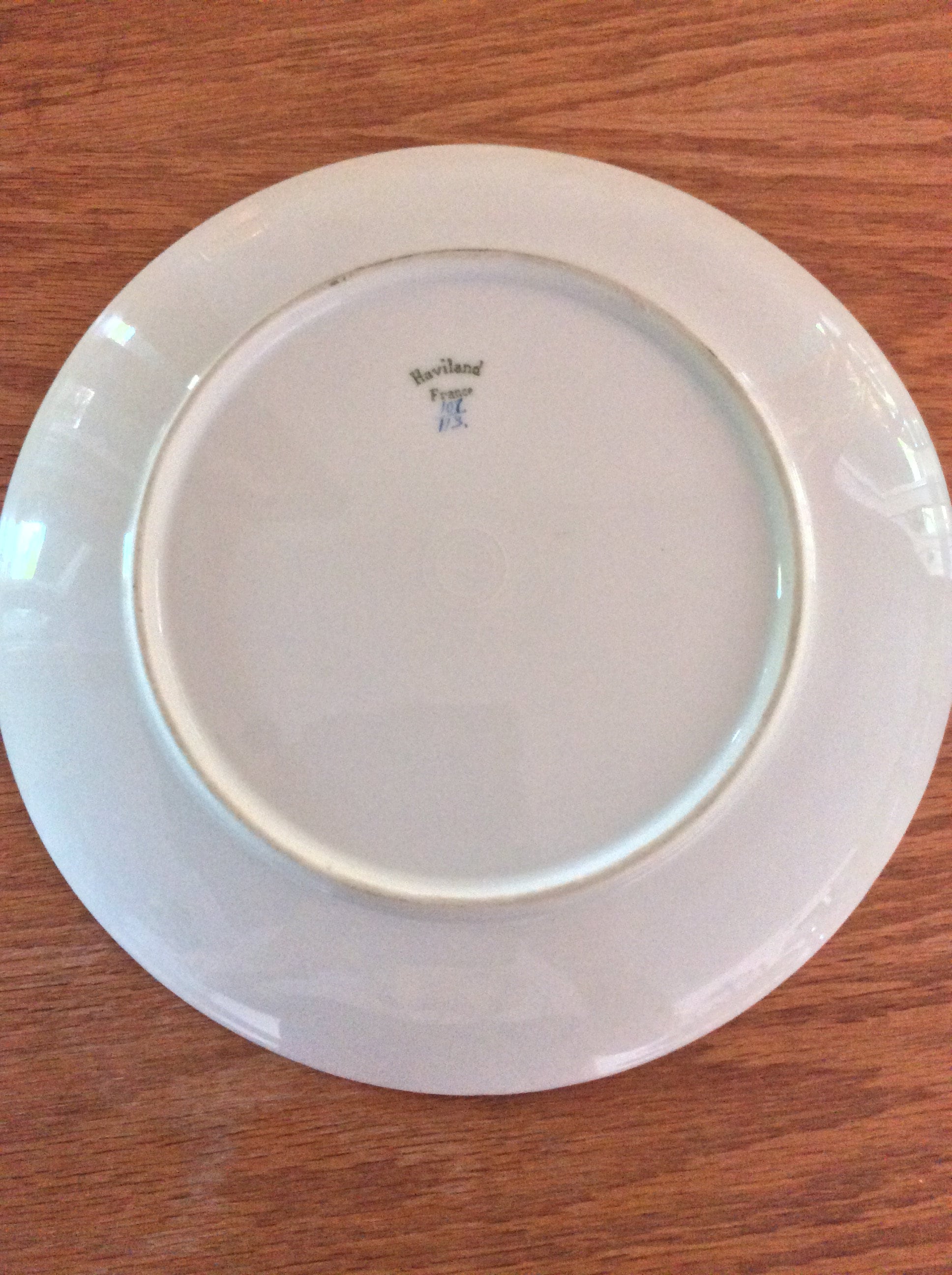 floral wall hanging plate is in good condition. It is marked 107/113 Haviland, France on the back side. No chips or cracks. It measures 8.5 inches in diameter.