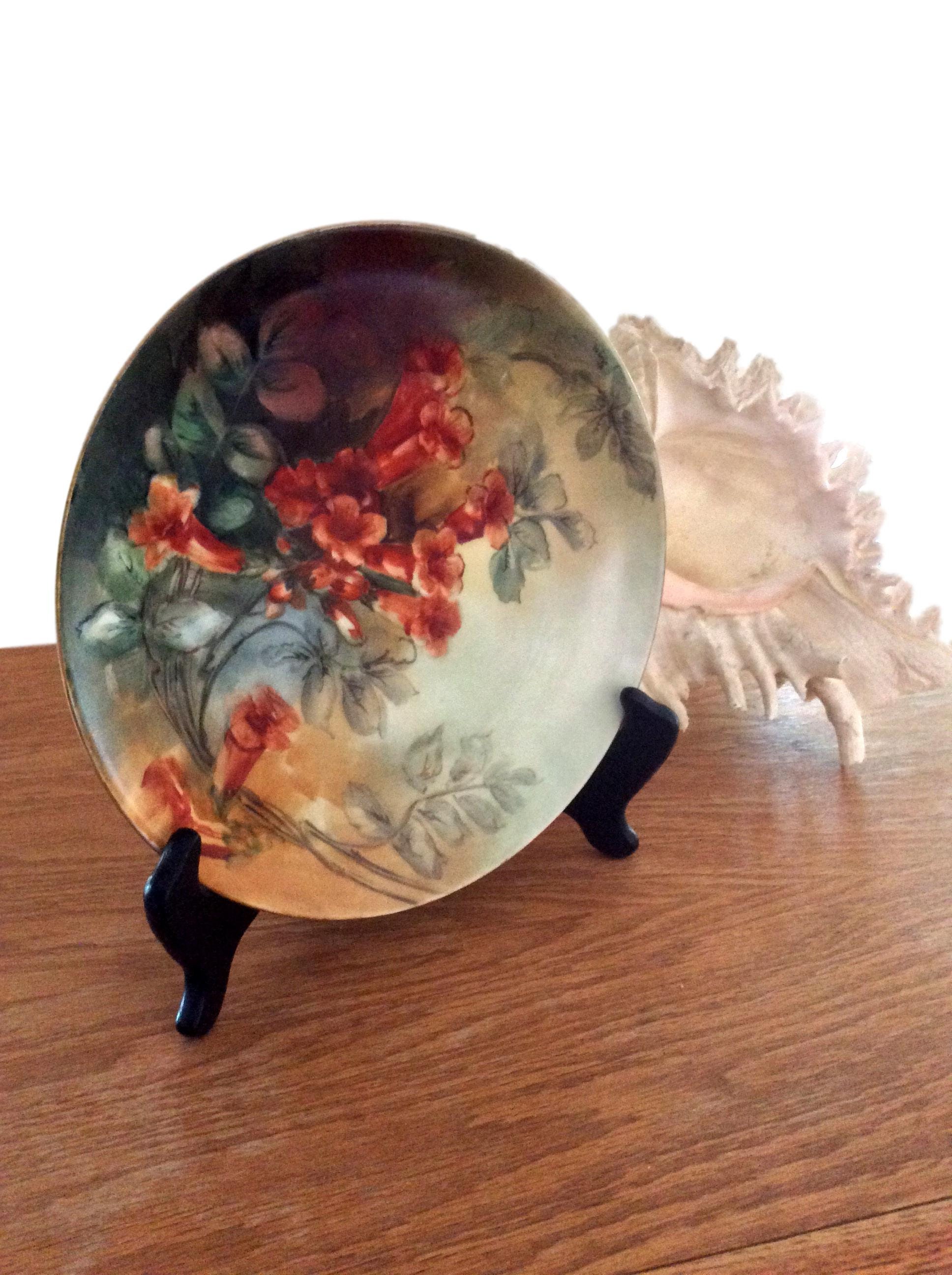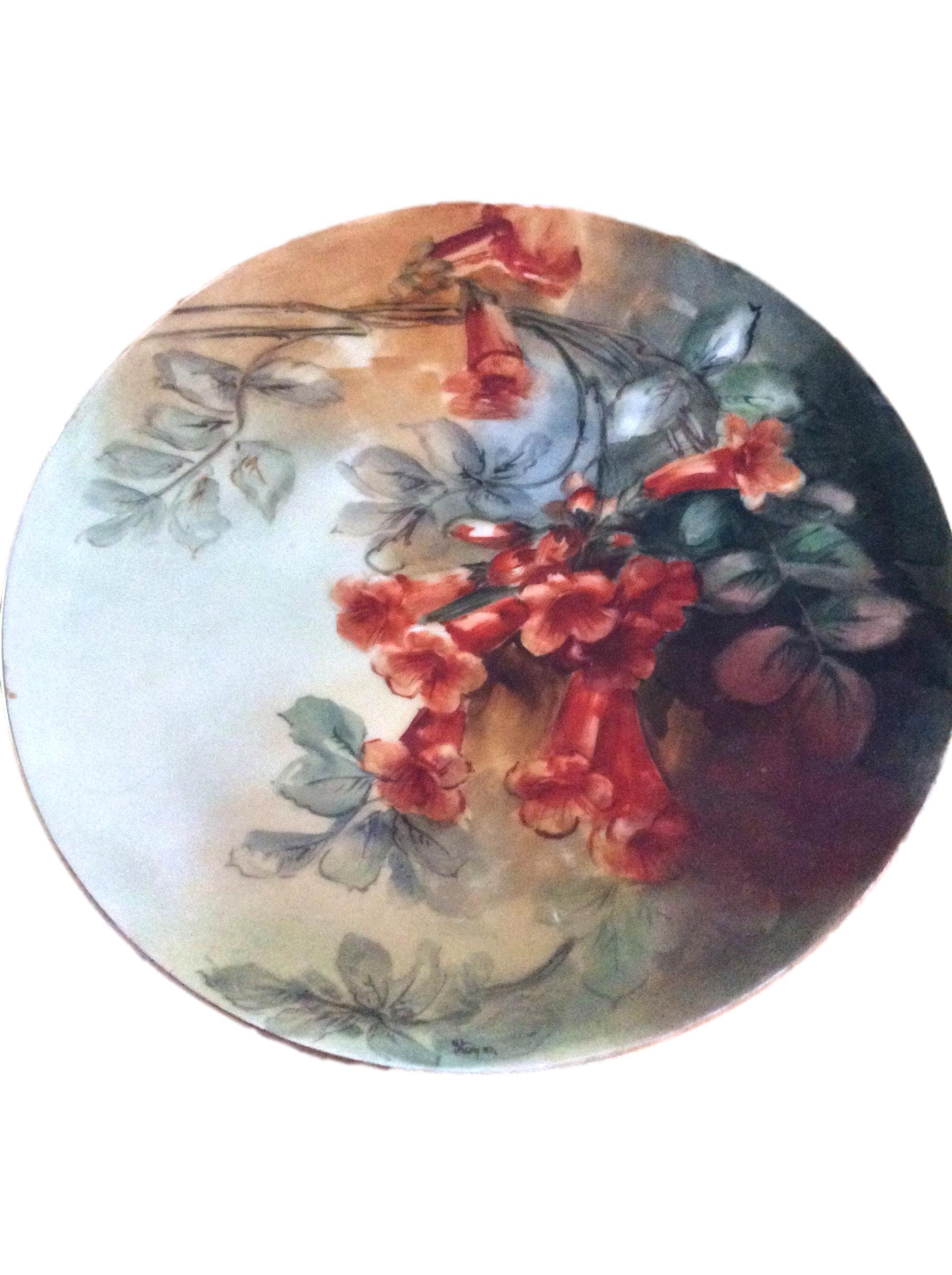 Haviland Hand Painted Antique Floral Wall Hanging Plate | Orange Gloxinia Trumpet Flowers