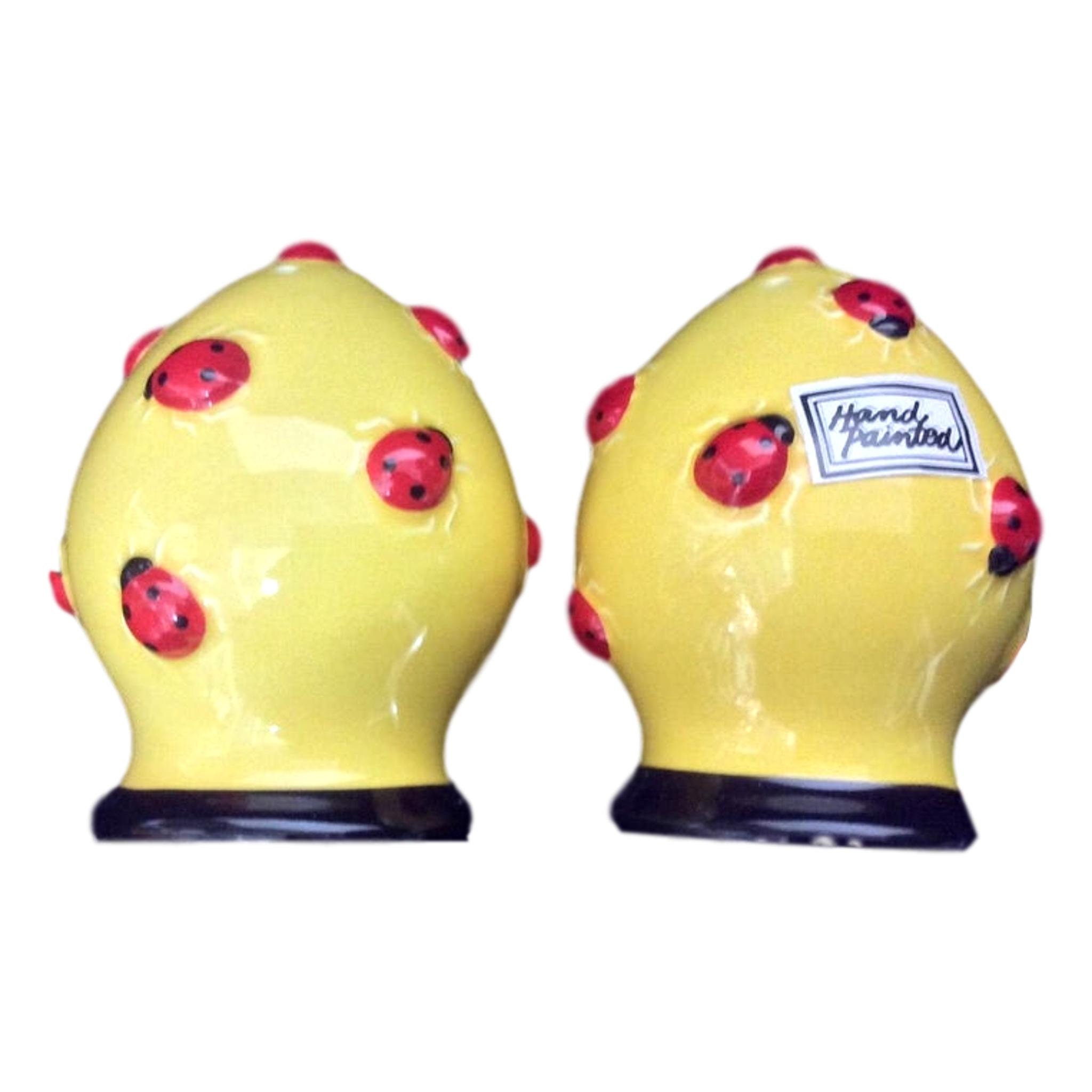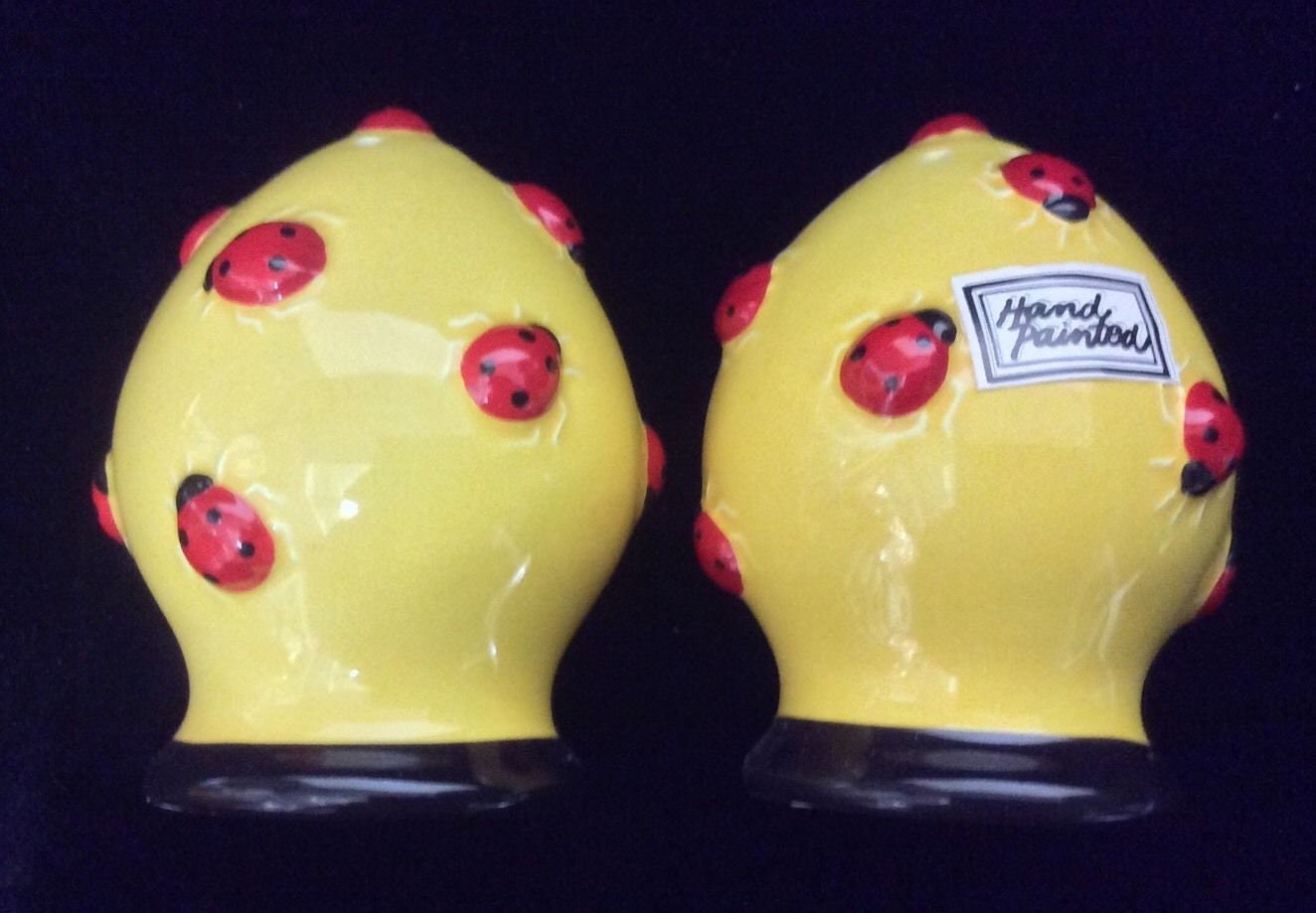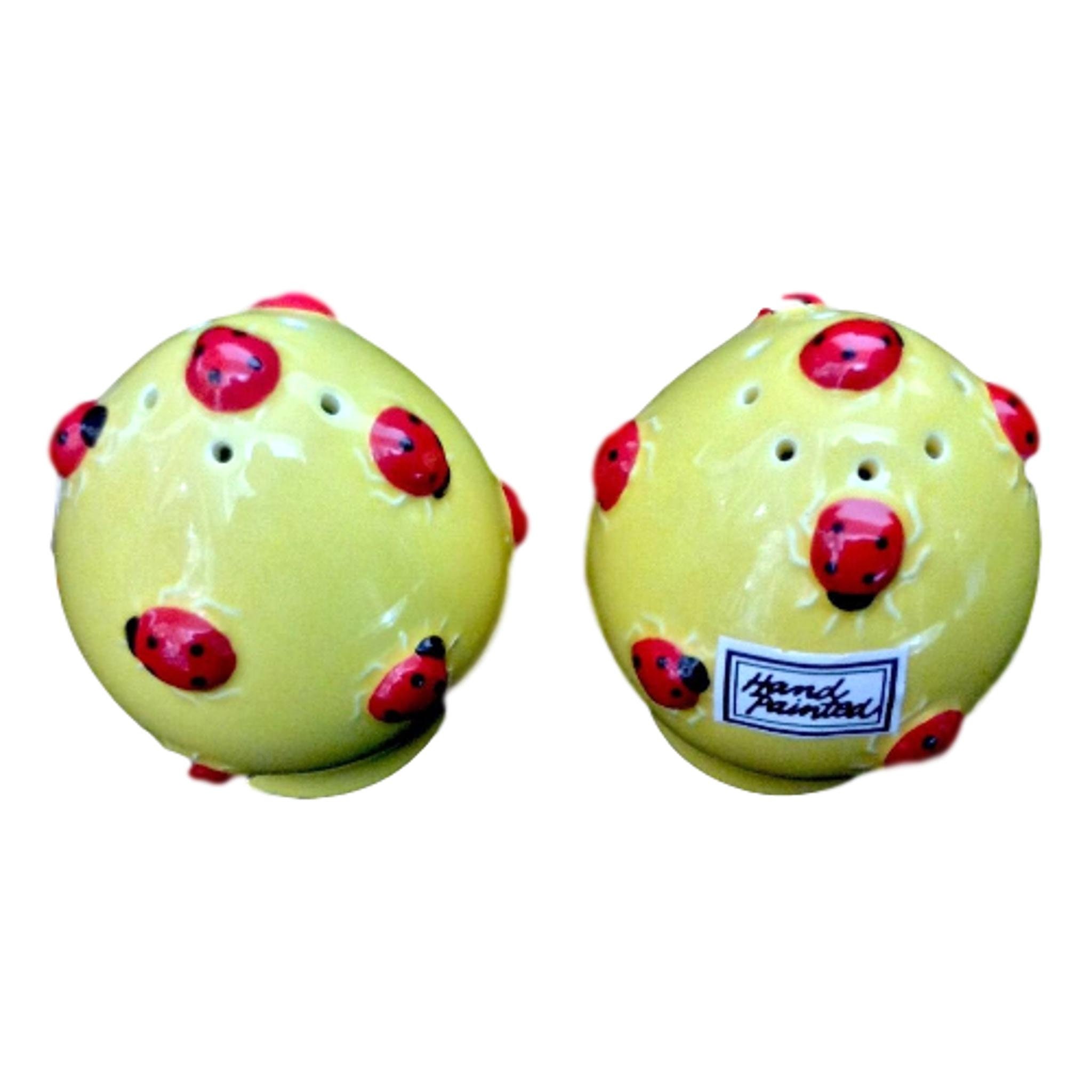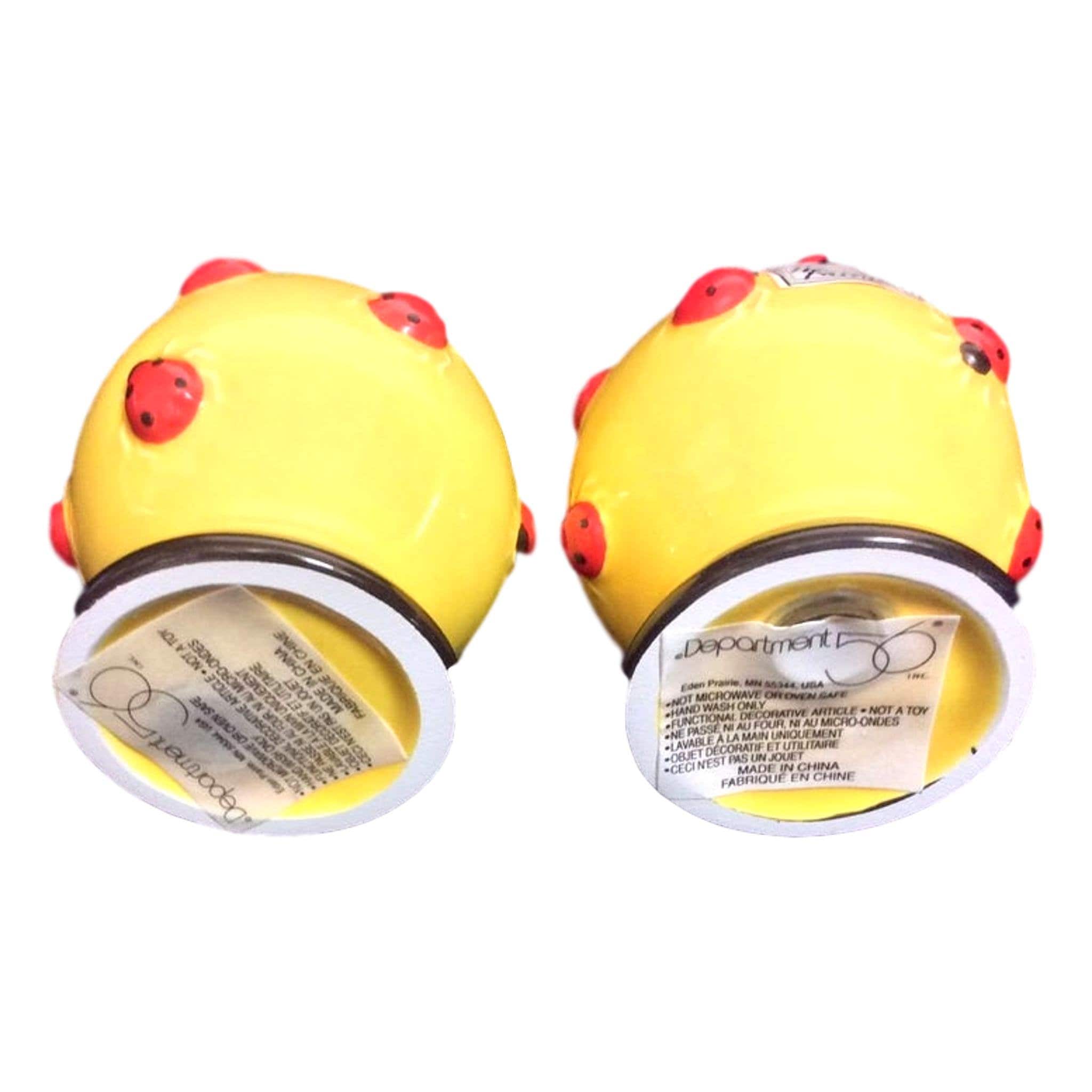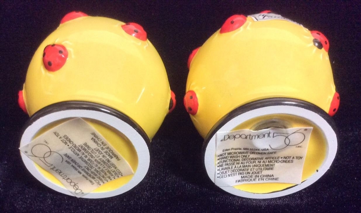 These novelty shakers by Dept. 56 are bright yellow with red and black lady bugs.