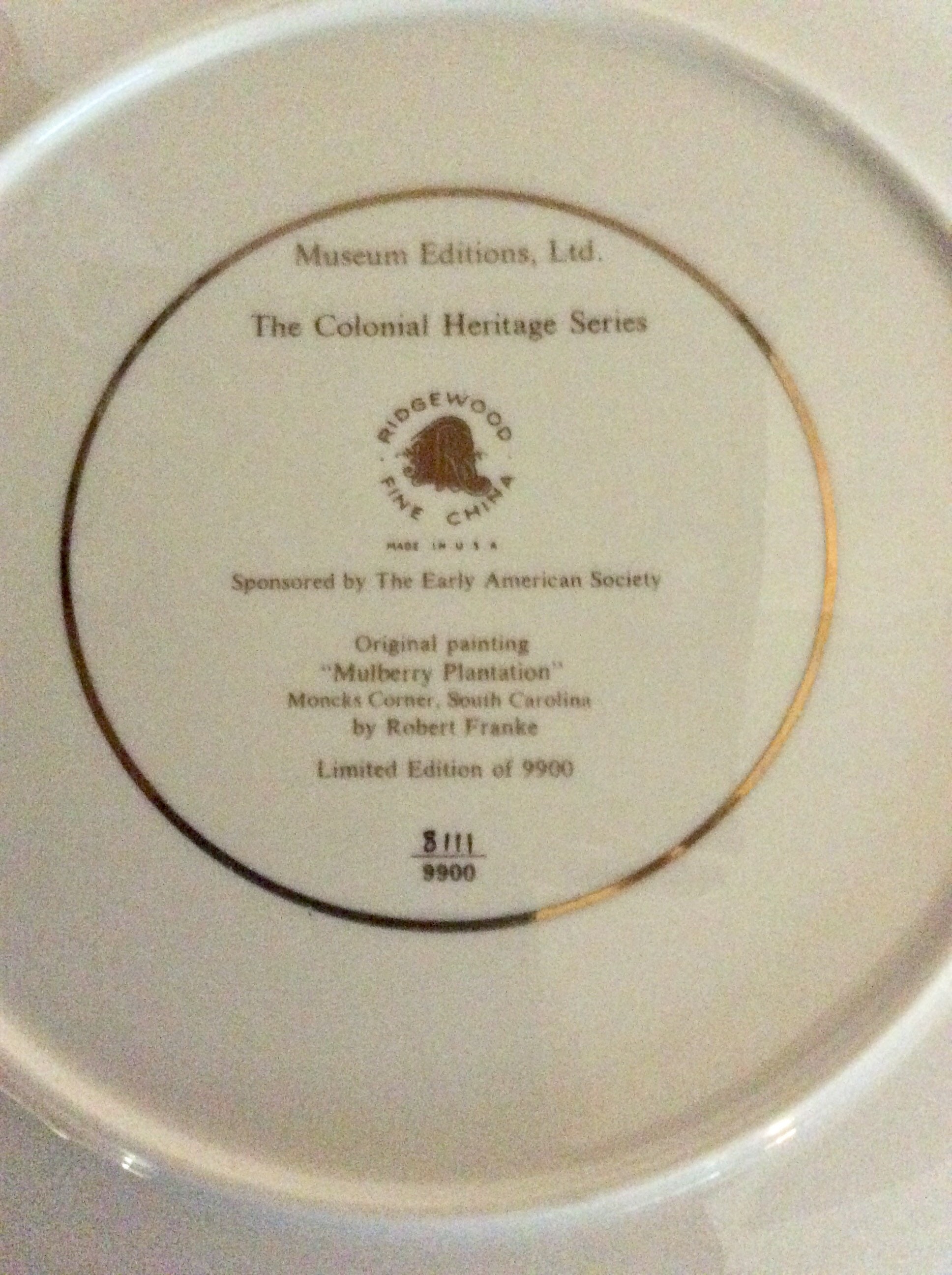Mulberry Plantation Collector Plate: Ridgewood Colonial Heritage Series