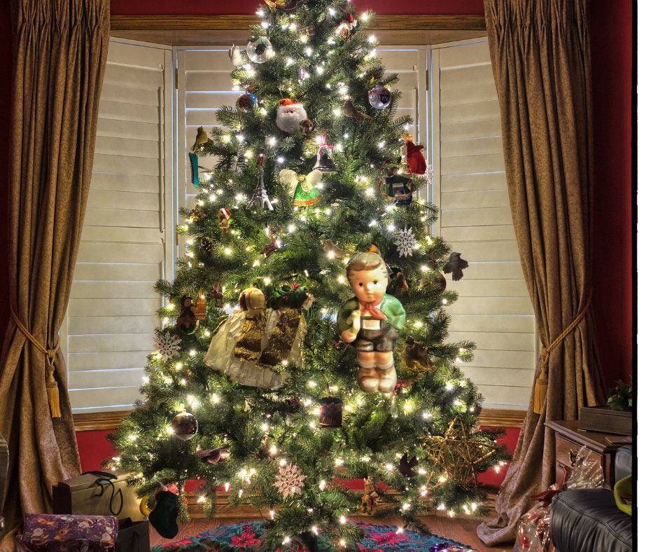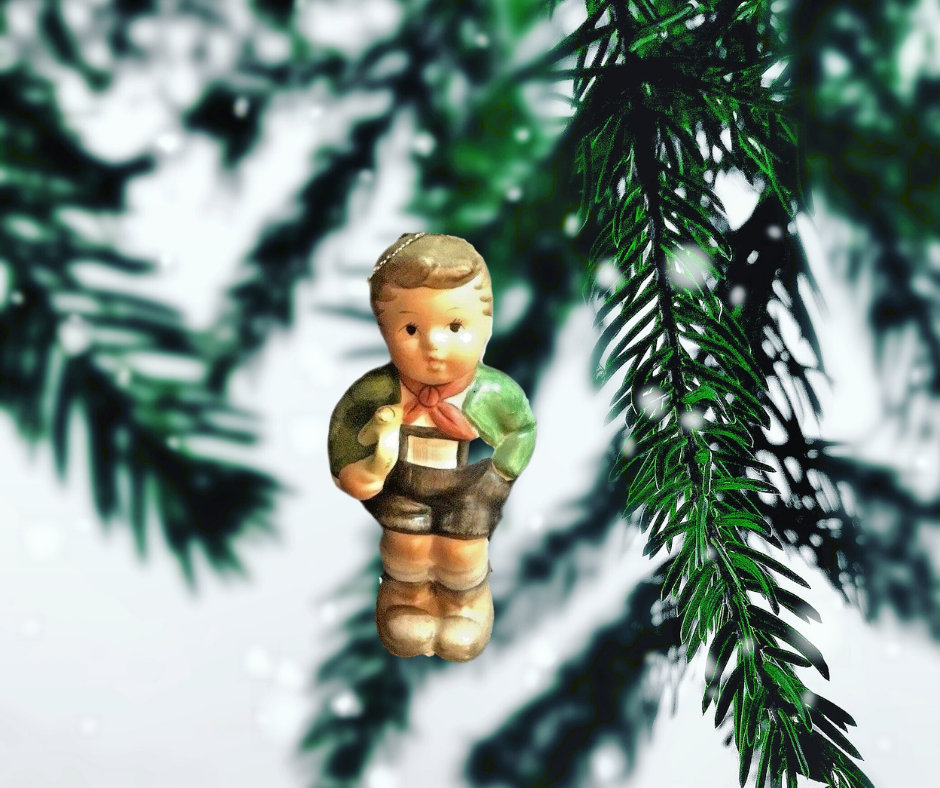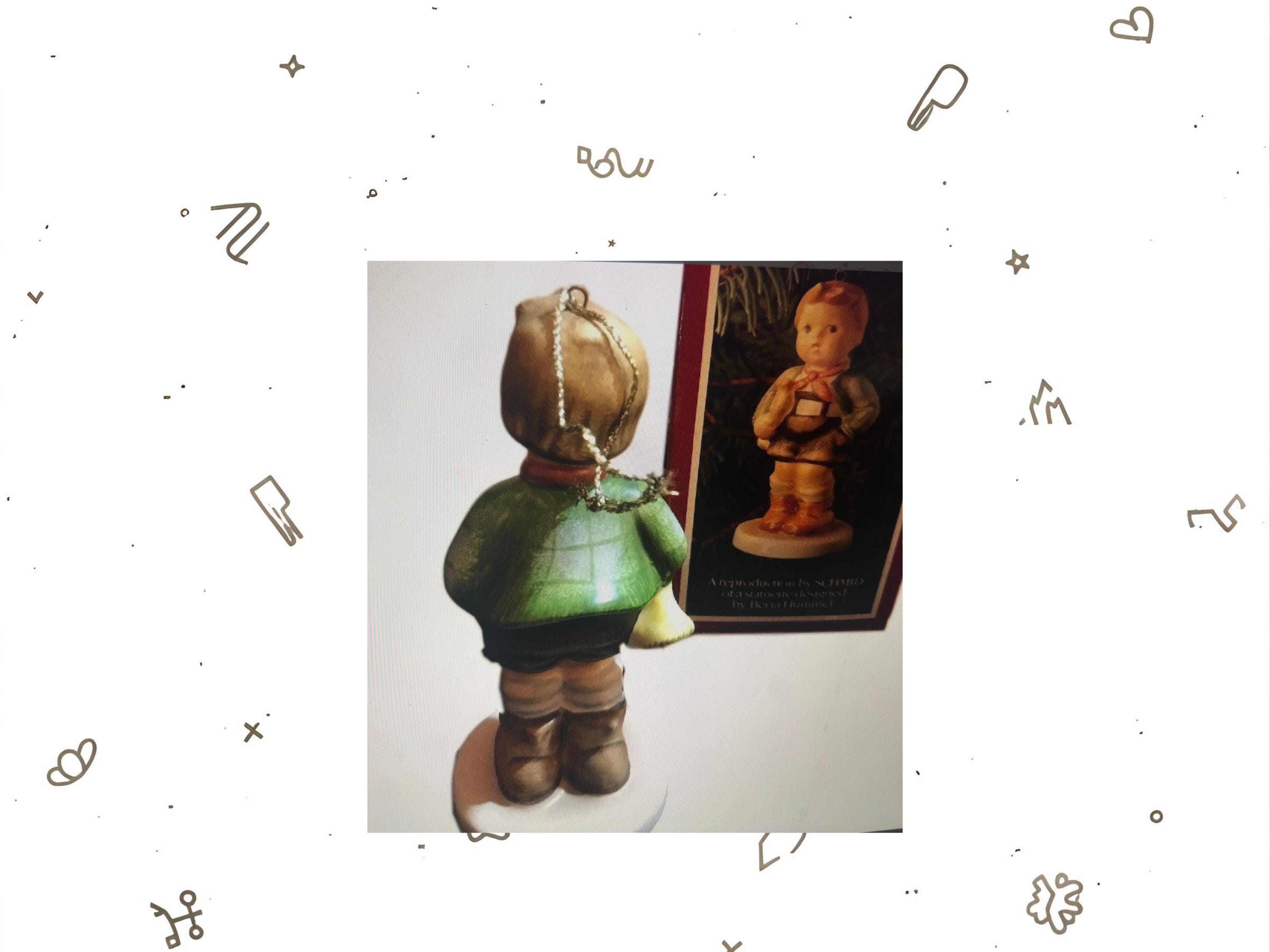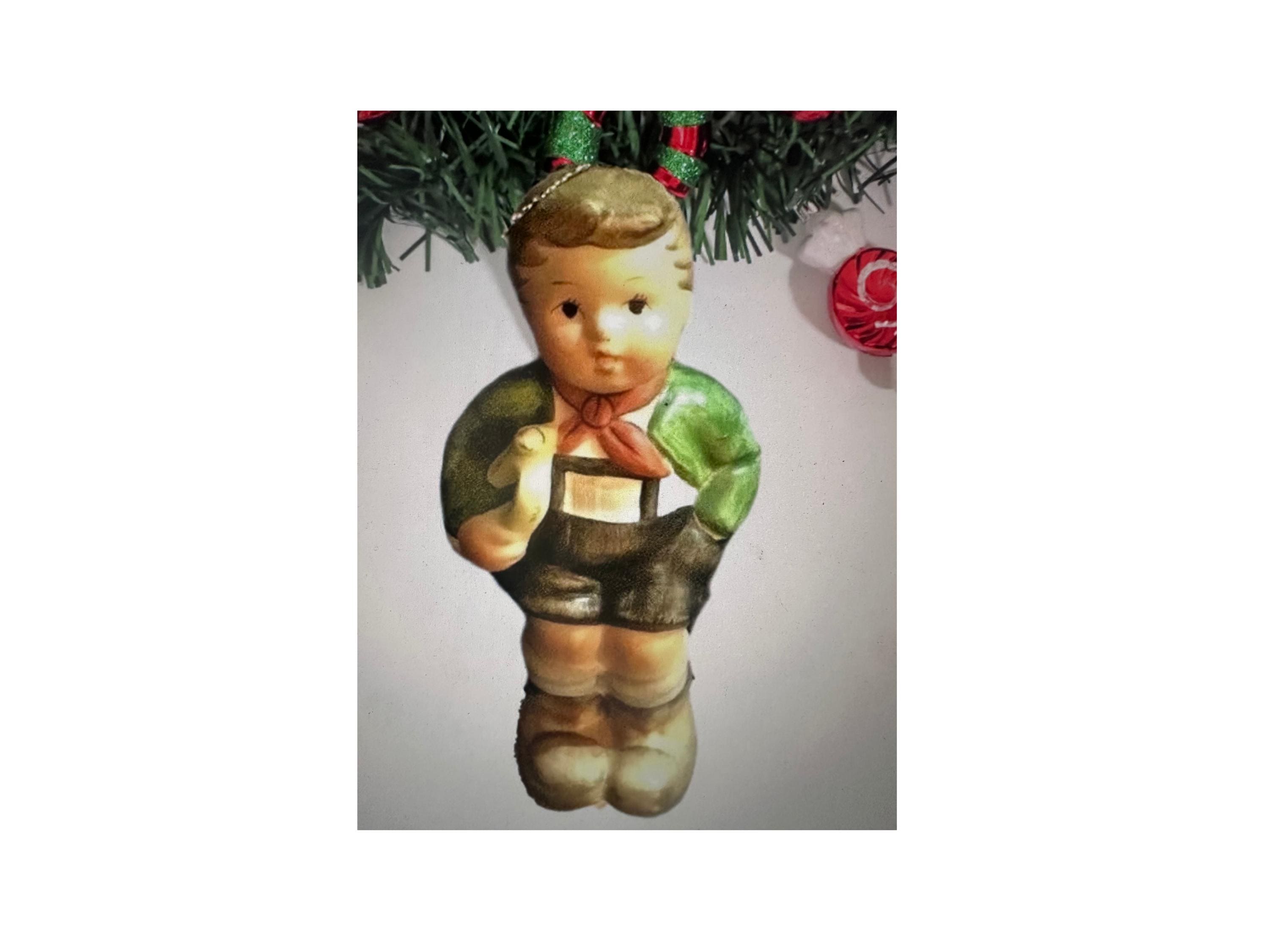 New vintage Schmid little bugle boy in the original box. SCHMID 1983 First Edition annual Christmas tree ornament figurine is a reproduction Hummel ornament. "Hark the Herald". This is a little ceramic bugle boy who measures approximately 4.5" tall in very good condition.