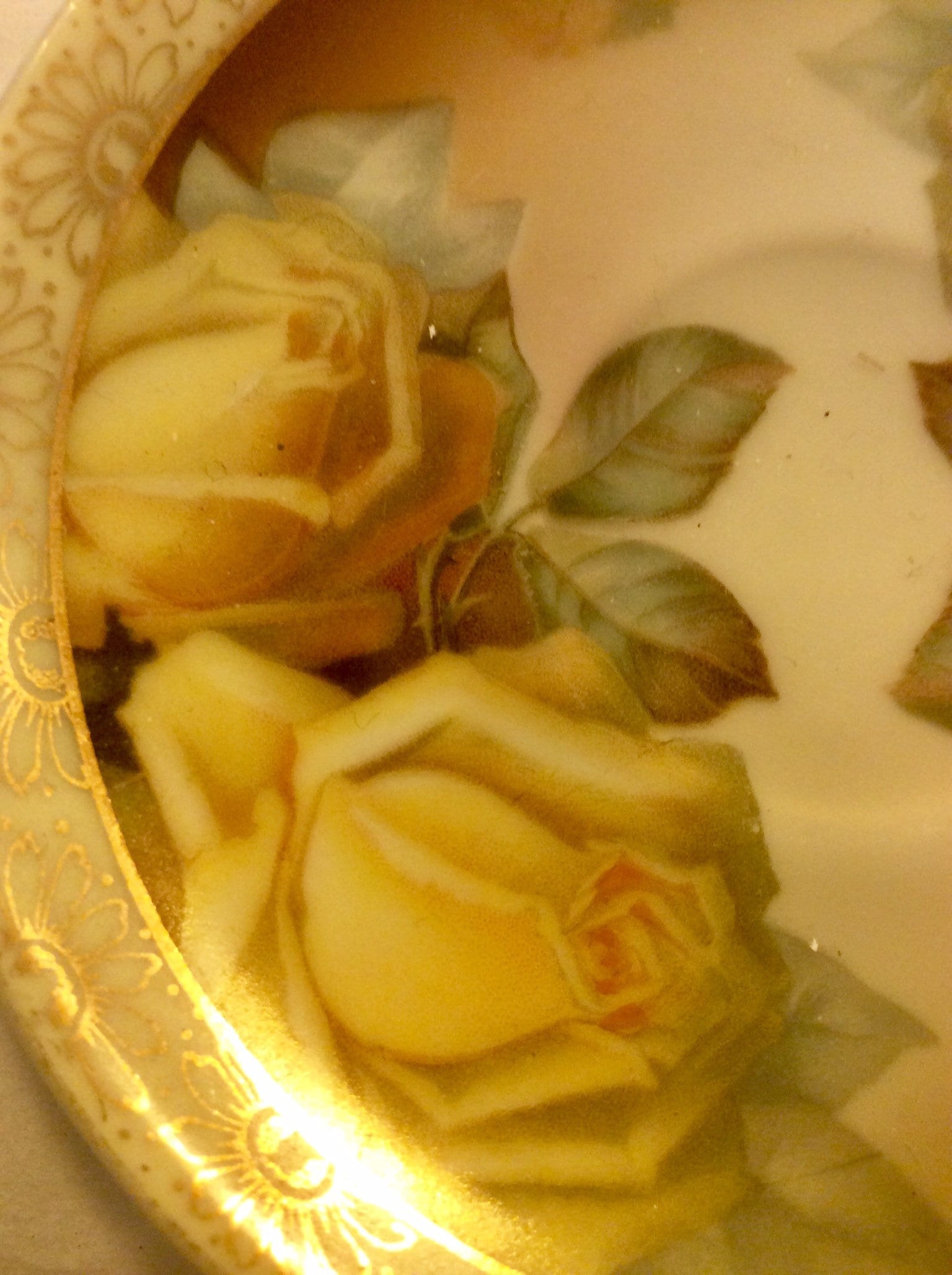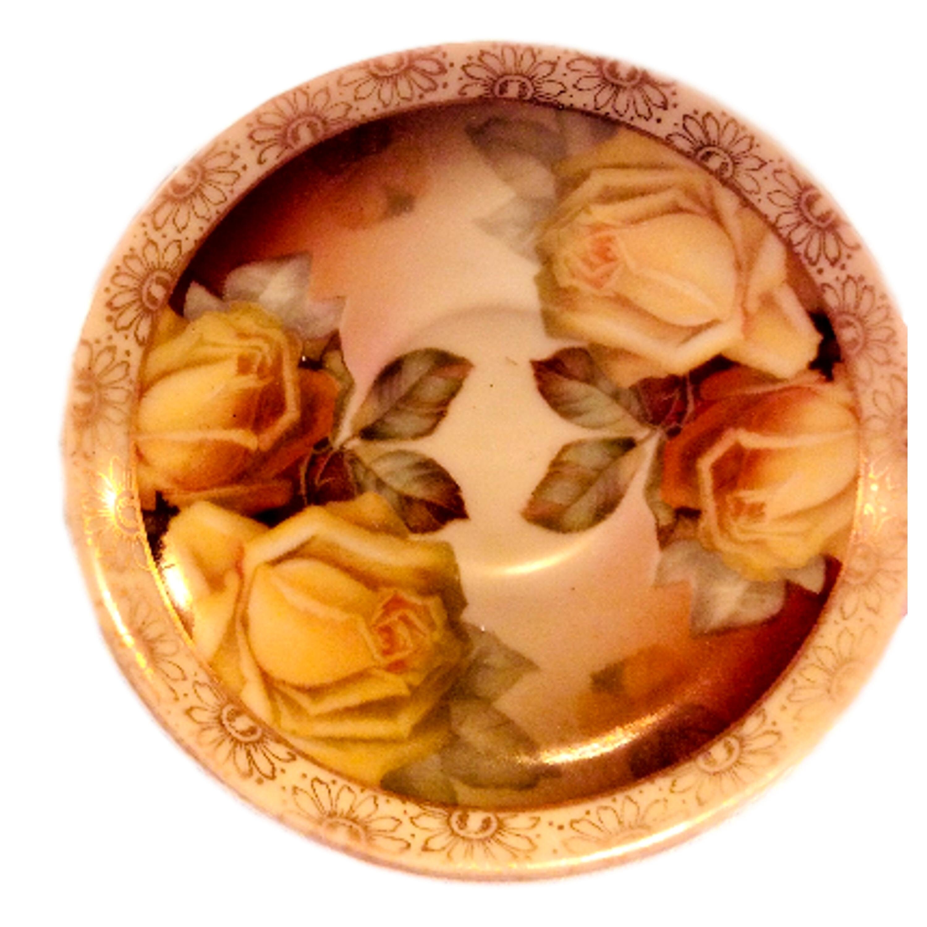 Set of 3 hand painted vintage china saucers from Thomas Sevres, Bavaria. These gorgeous plates measure 4.5 inches in diameter. The vintage saucers feature yellow roses. They are simply stunning.