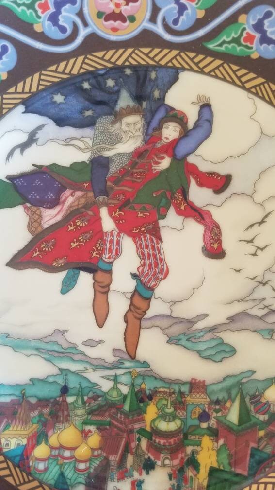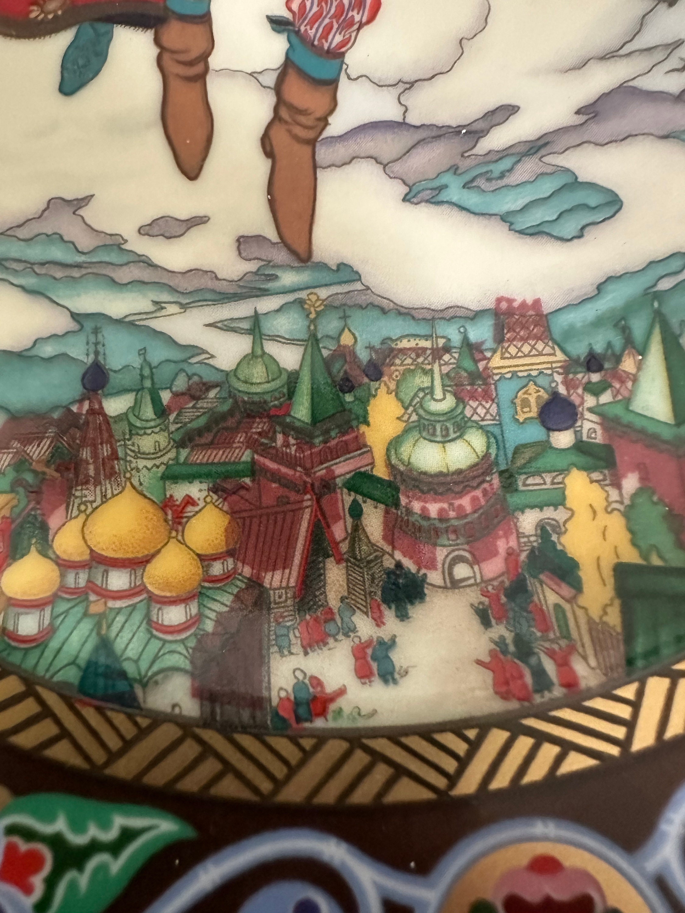 This is a Russian gifts fairy tale folk lore wall hanging plate by Villeroy and Boch. It is made from fine porcelain.
