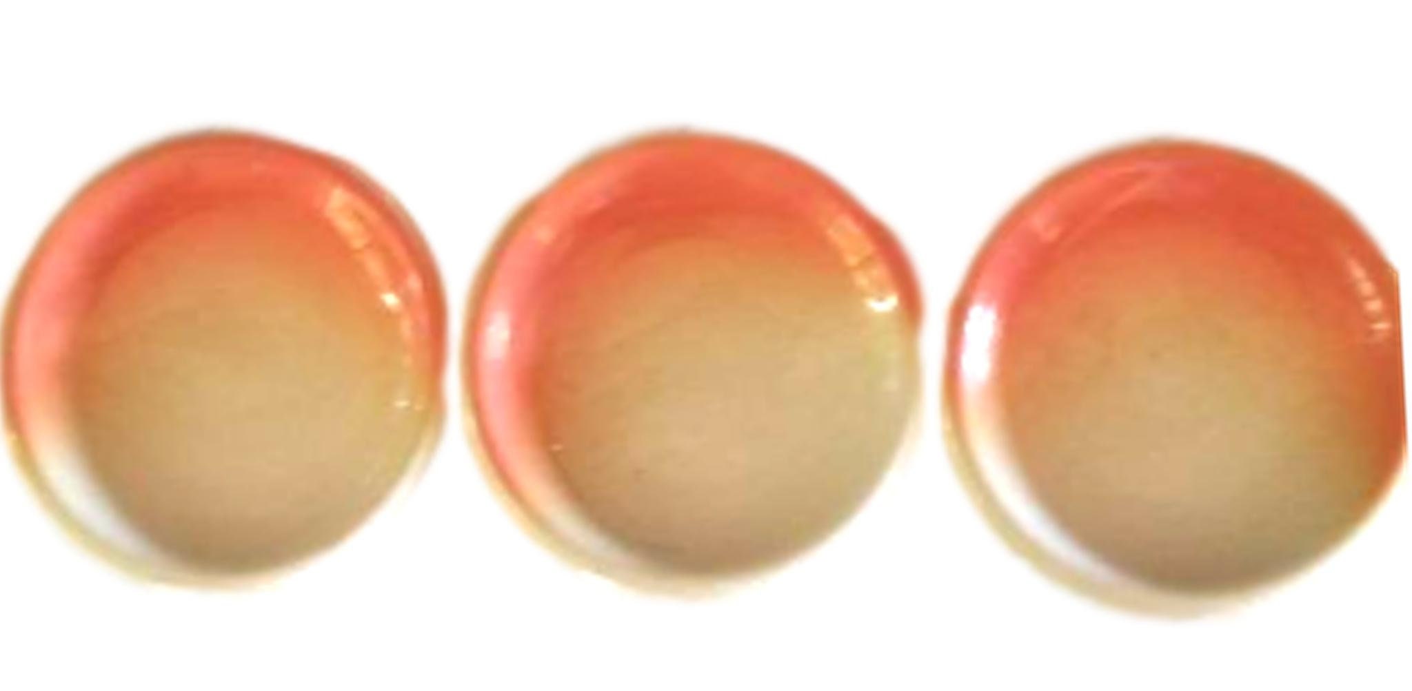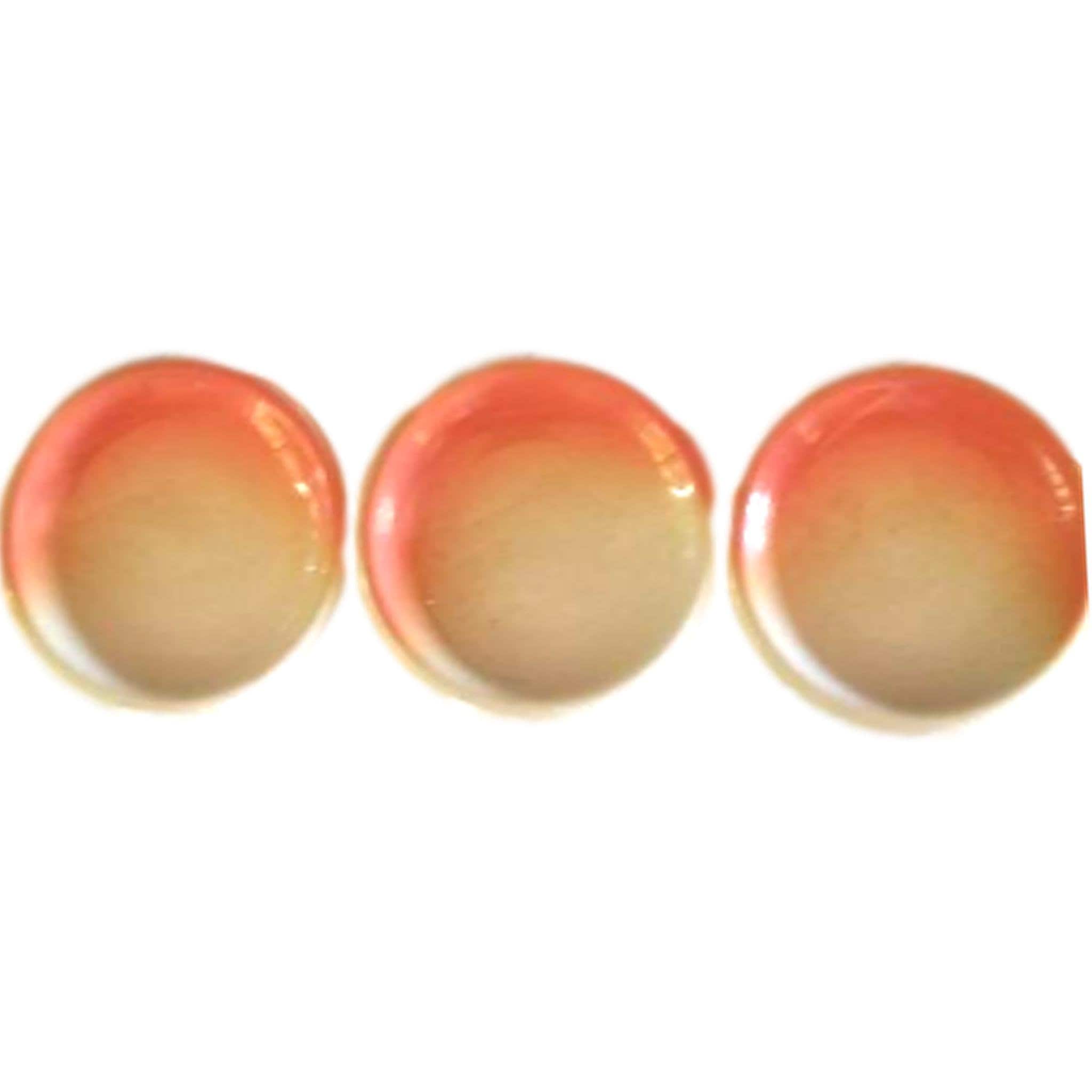Date code mark on the back of the butter dish is 5-P which stands for February 1953. Color is a beige to a burnt orange. These are in excellent condition. They measures 3.5" in diameter.