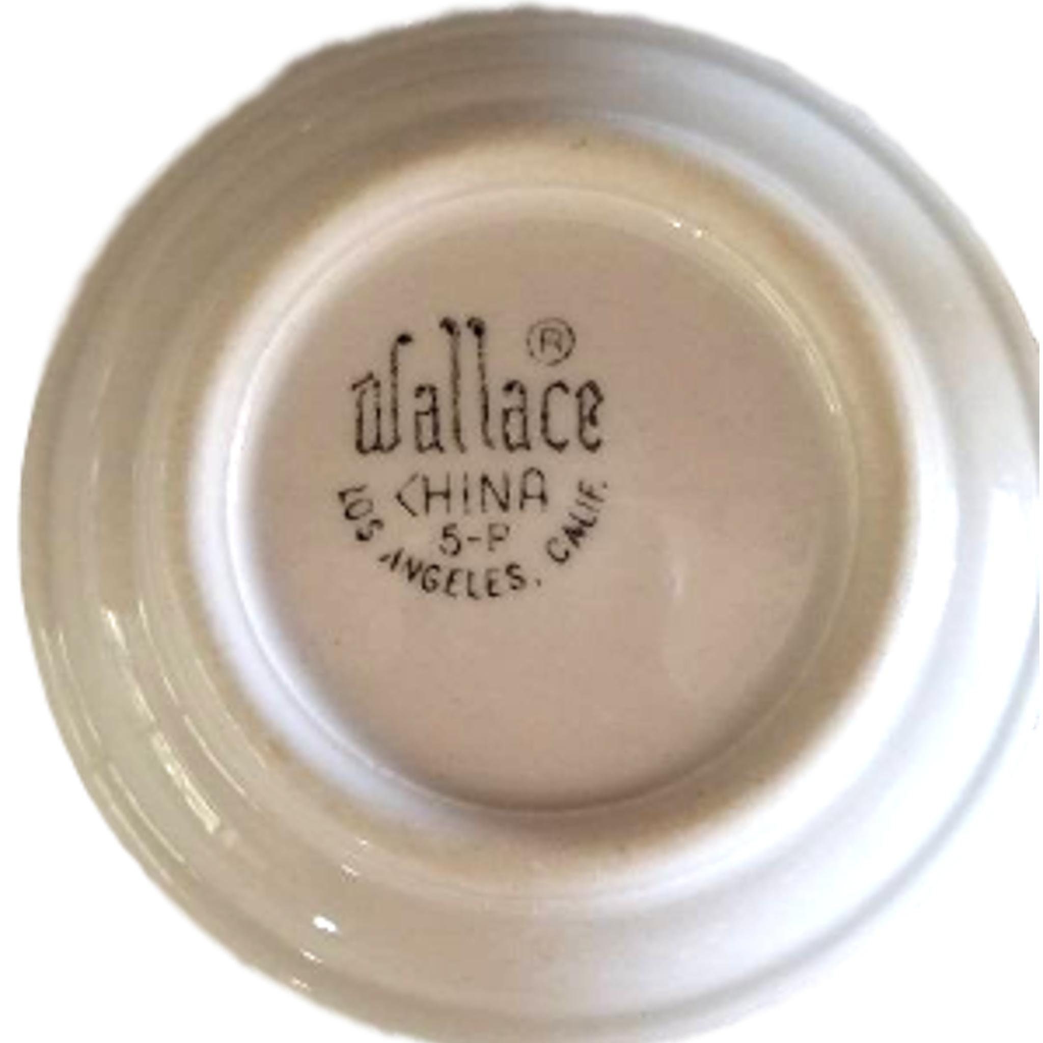 This is for a set of (3) three rare small dish Wallace China restaurant ware butter pats. They were made in Los Angeles, California.