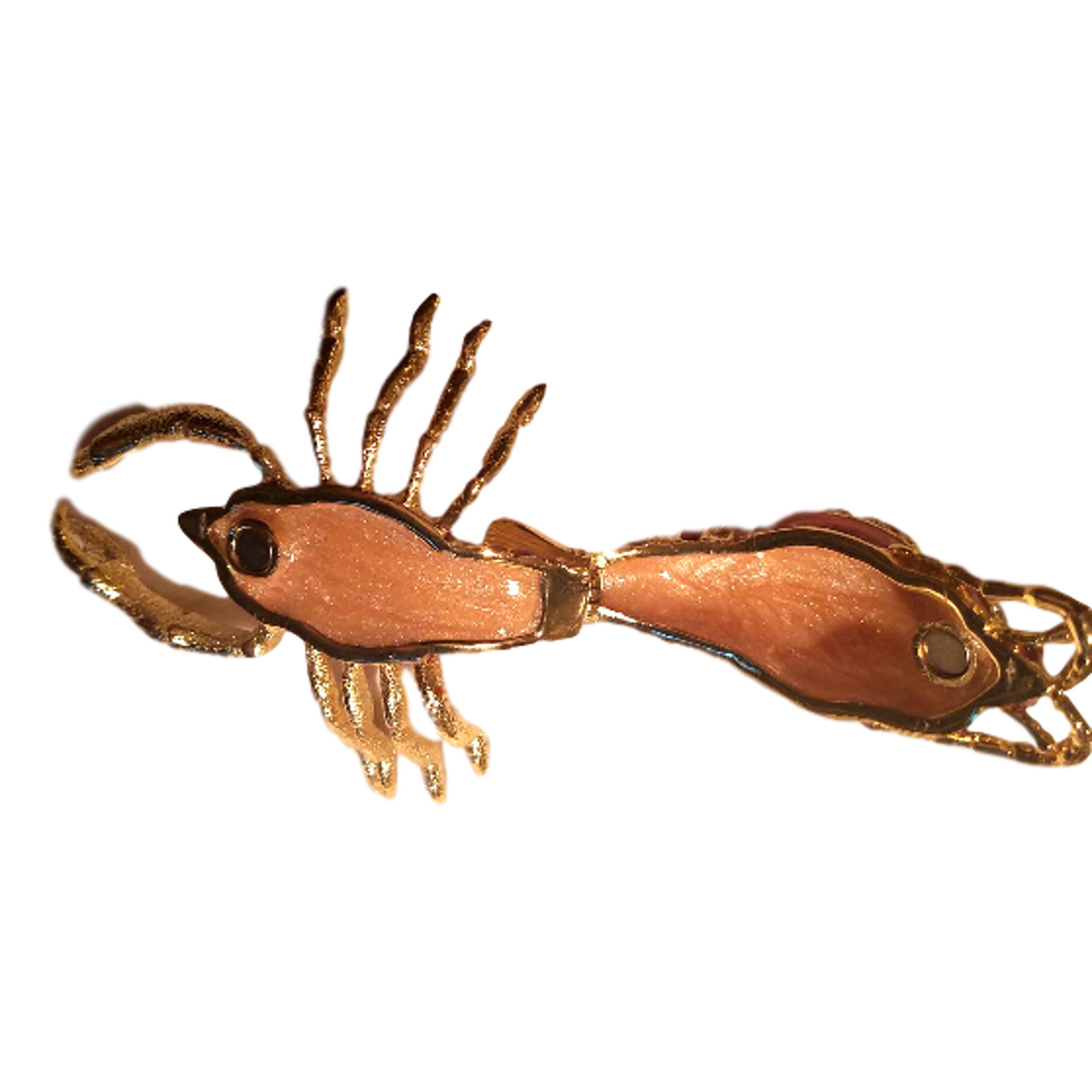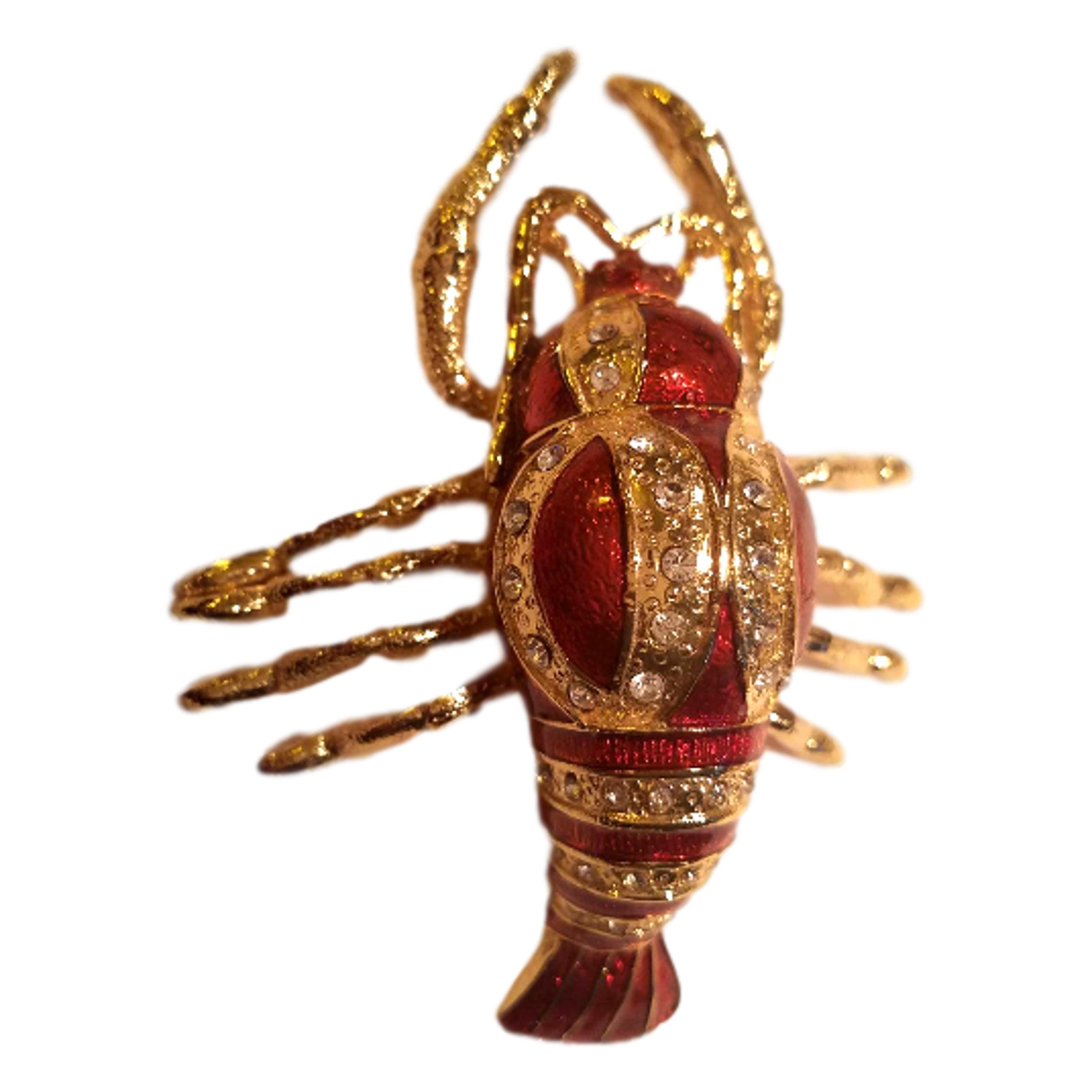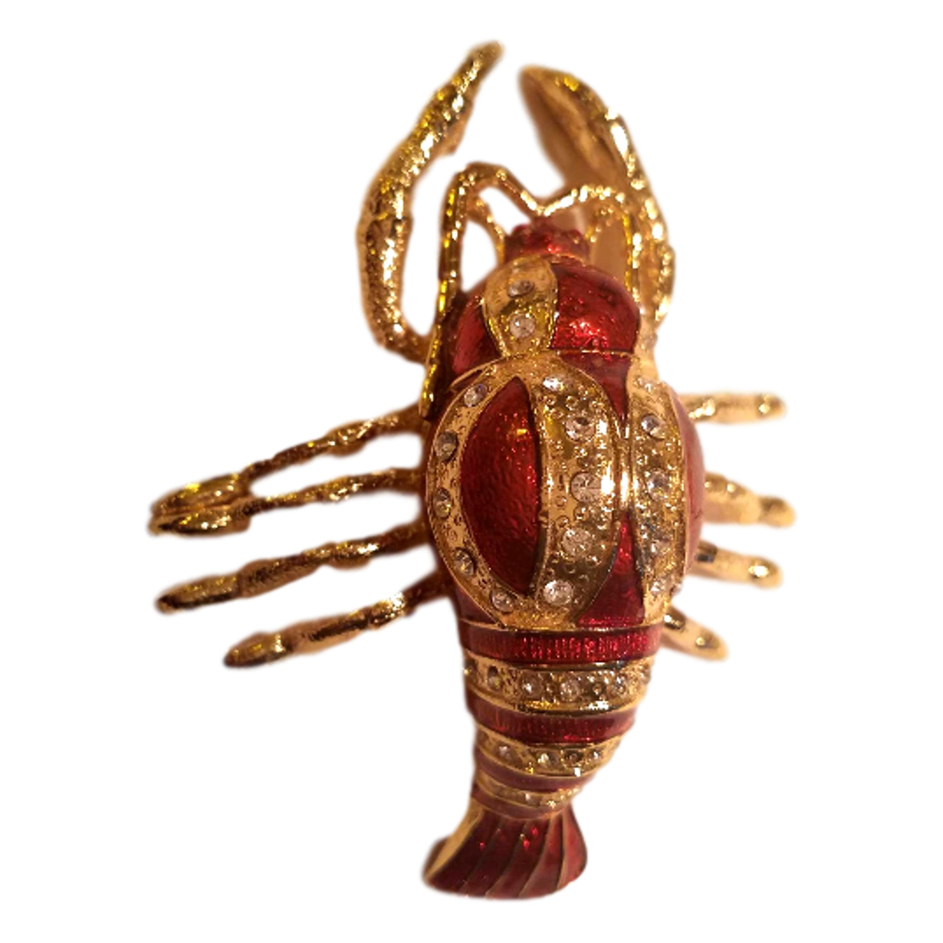 This is a stunning hand painted red and gold enameled and gold lobster bejeweled trinket box. The small trinket box measures approximately 3.5 inches long x 3 inches wide. It is adorned with clear crystals. The lobster has red high quality crystal eyes. This is a great decorative sea life style jeweled box in excellent condition. Use it to store a ring or small item. Great keepsake box.