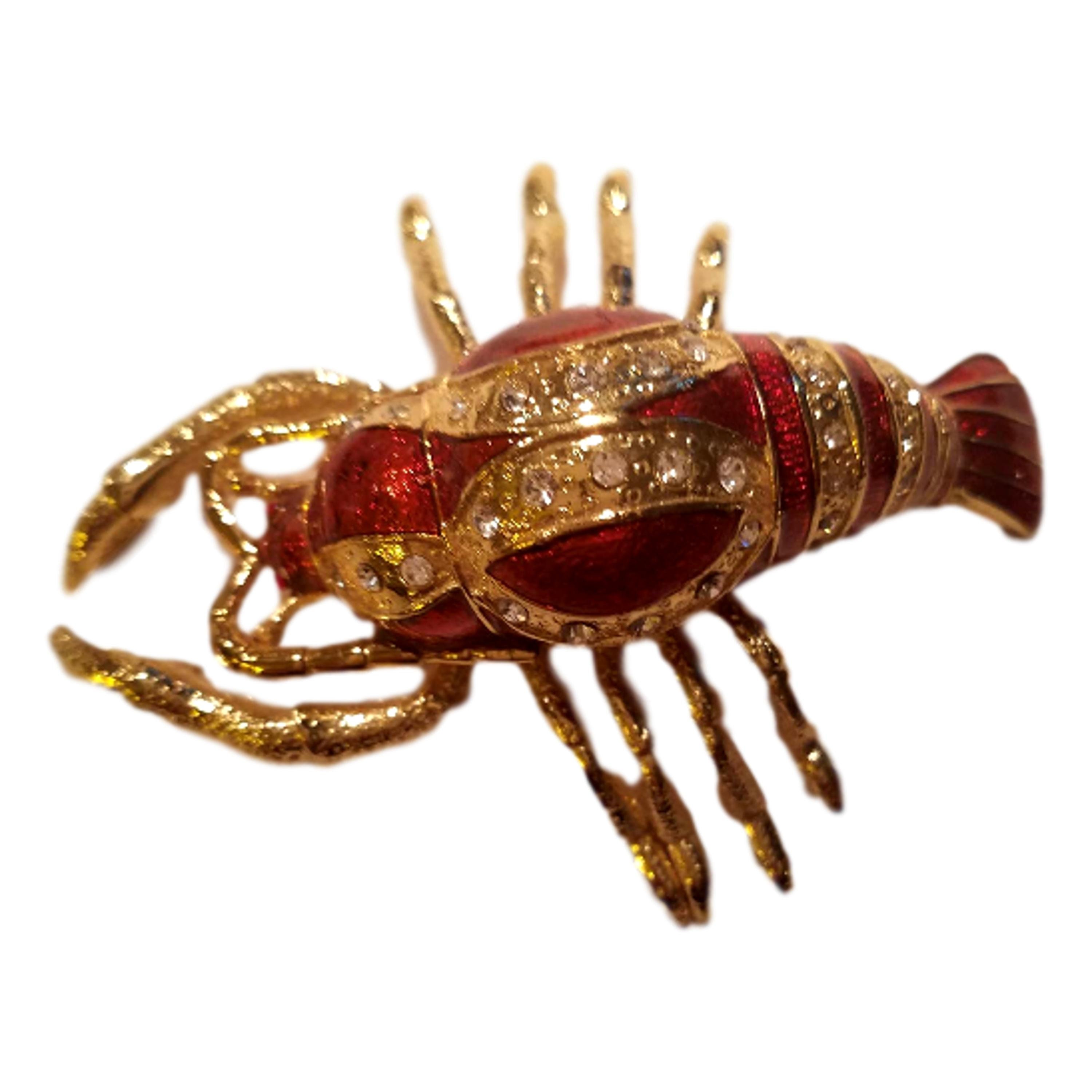 Bejeweled Lobster Trinket Box: Hand Painted Enamel Stash Box
