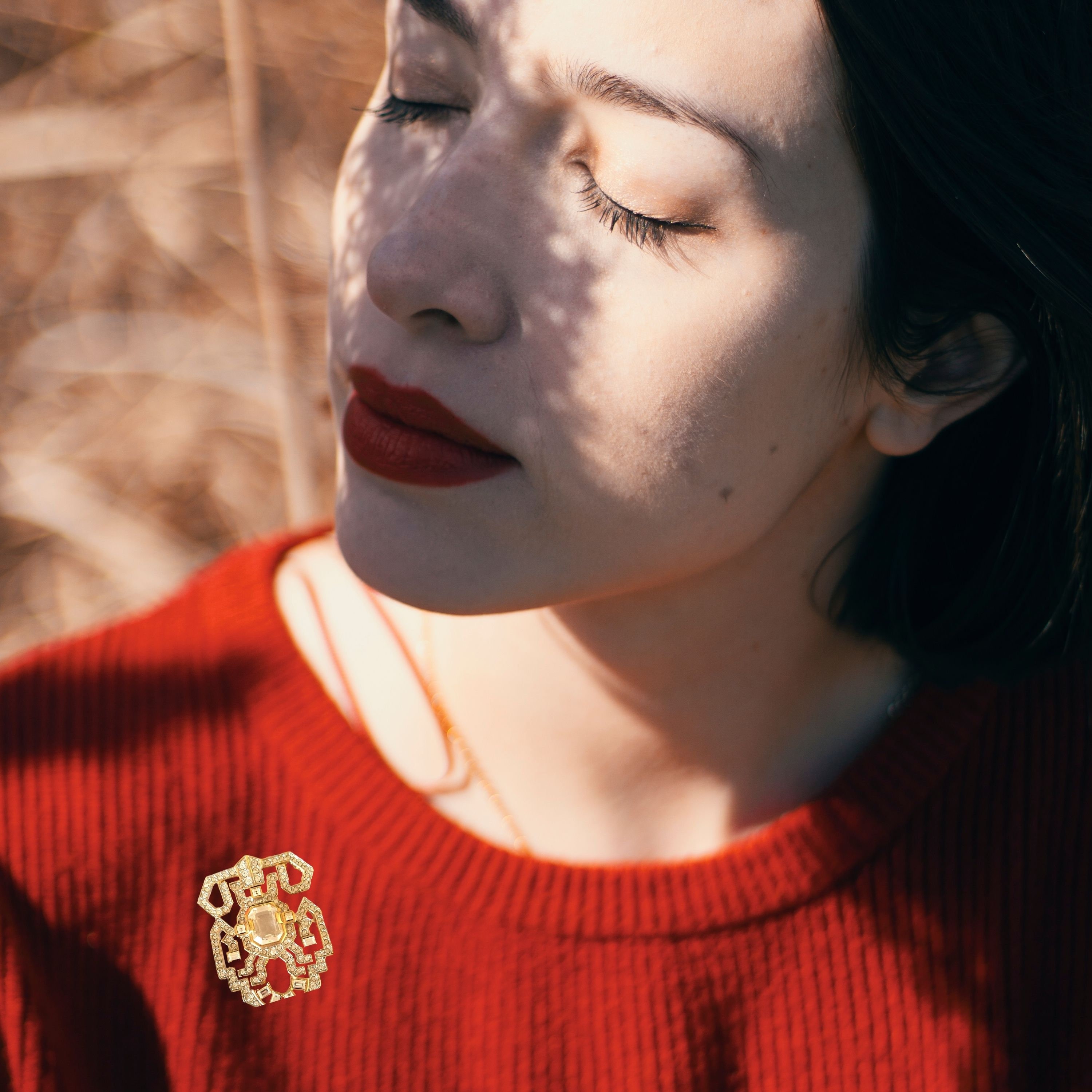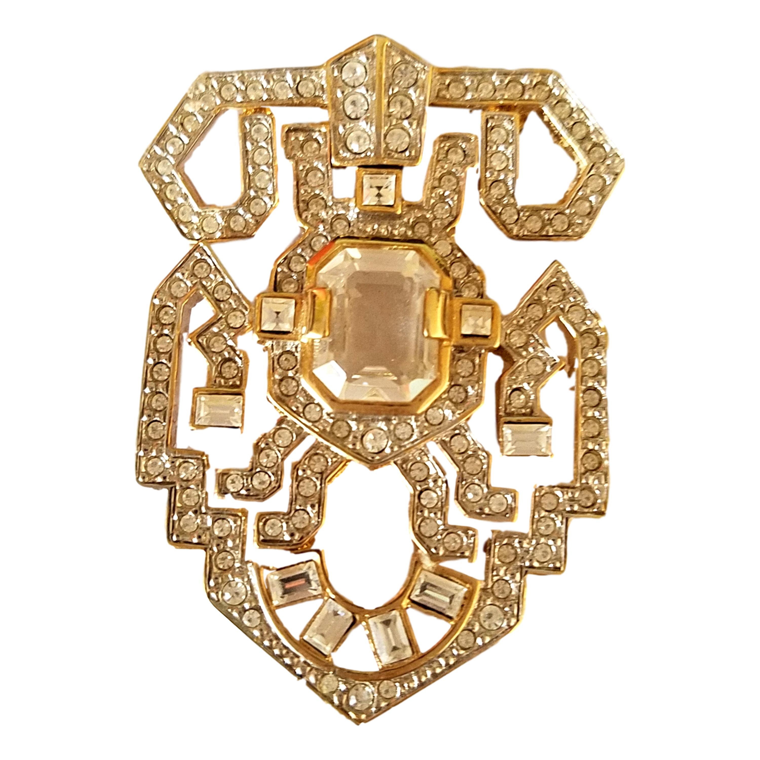 - Vintage-inspired gold star brooch with shimmering rhinestones