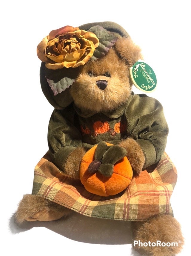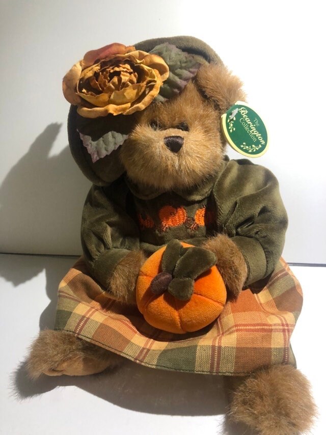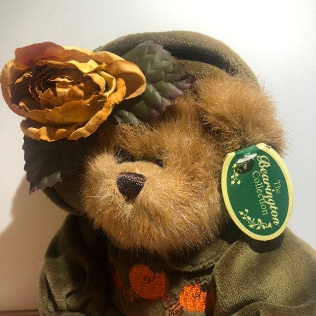 Cute girl bear decor. This Bearington Bears plush teddy bear girl bear is dressed in warm, fall colors. She measures 14” in height and is in fantastic condition.