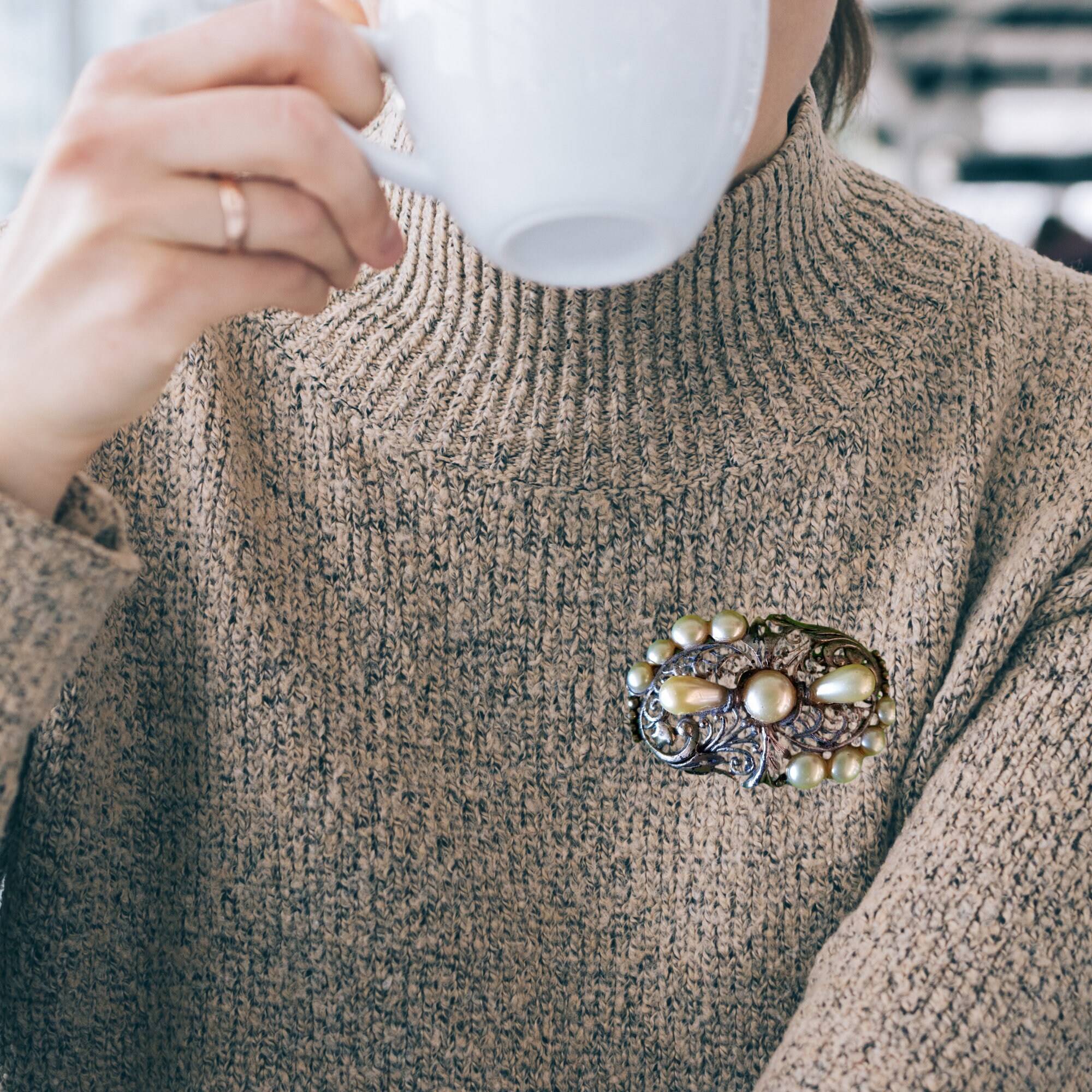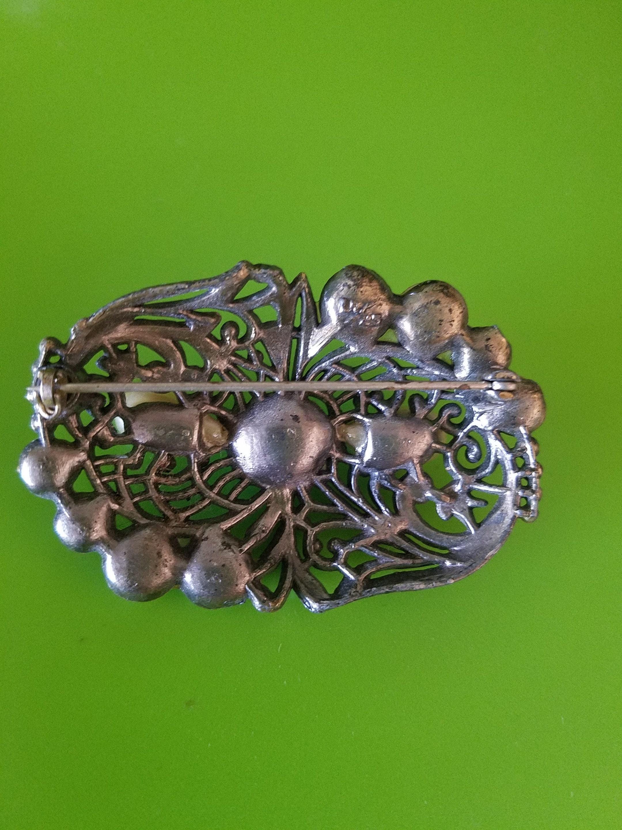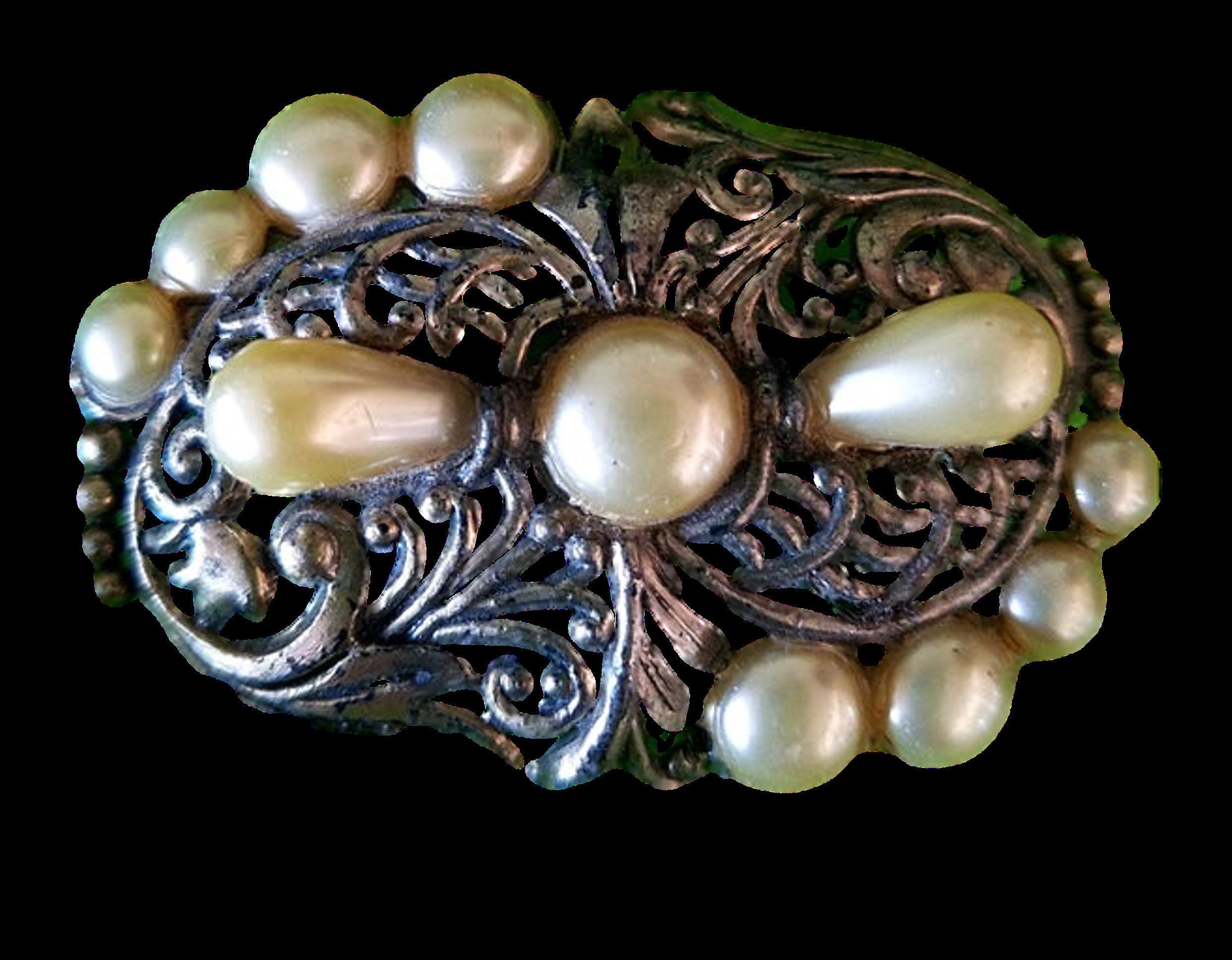 Thinking of you and perfect for collectors or anyone who loves unique accessories, this collectible jewelry piece features vintage faux pearls that add a touch of sophistication and charm. The oval shape measures approximately 2.5 inches wide by 1.5 inches high, making it an eye-catching addition to your wardrobe or jewelry collection.