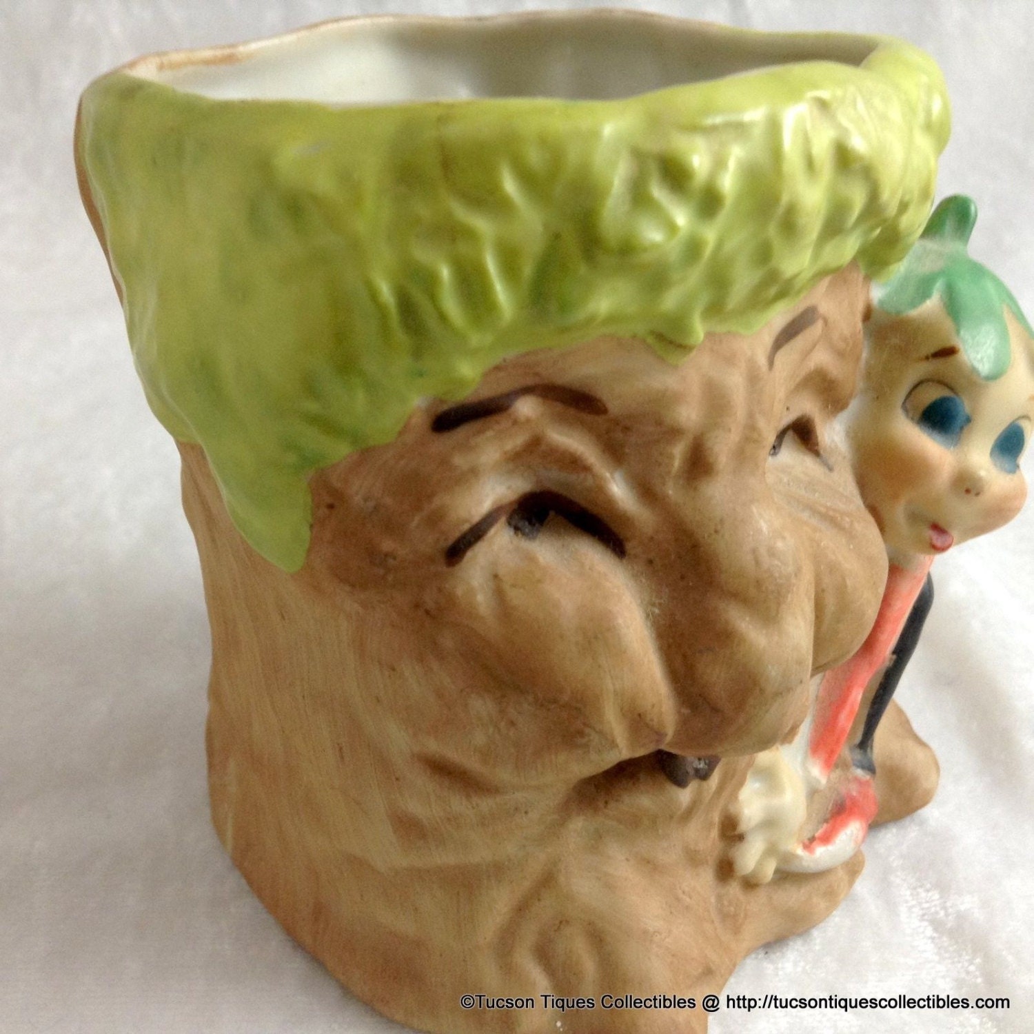 Whimsical 1950s ACME Pixie Elf Tree Stump Planter - Mid-Century Christmas Magic Fantasy Vase