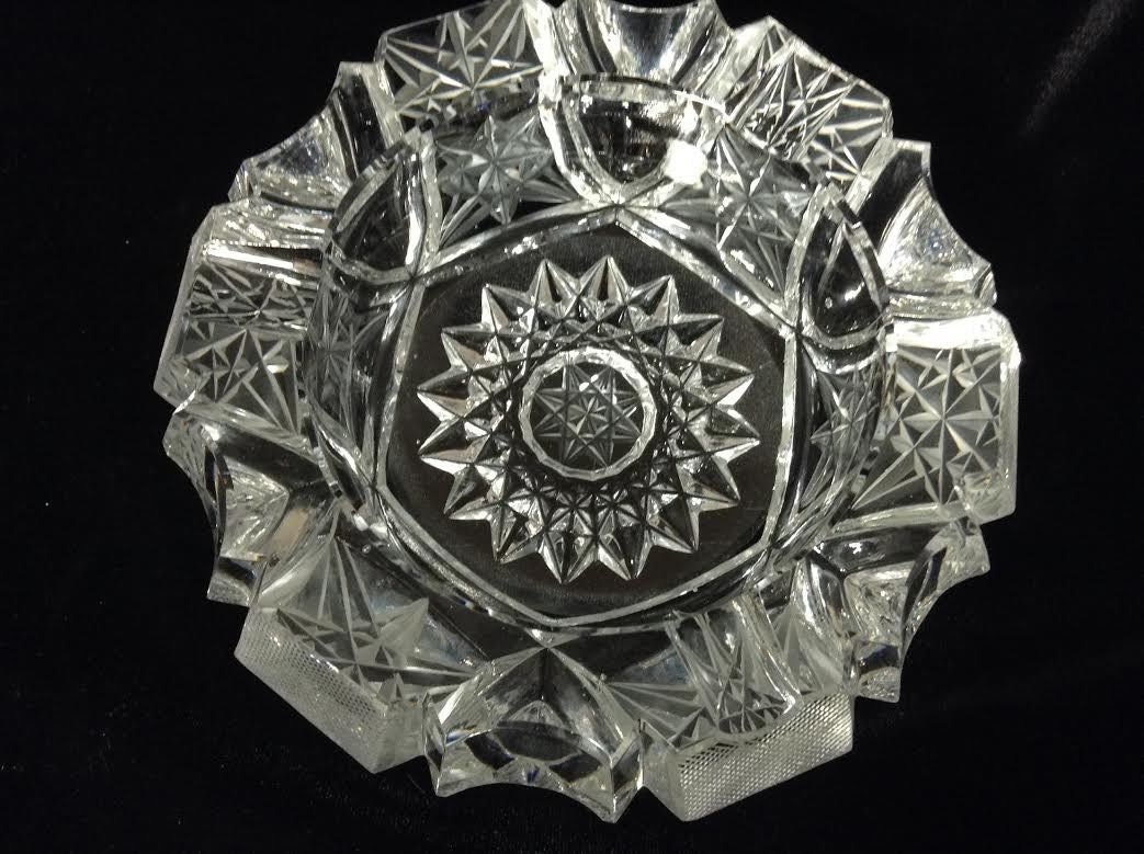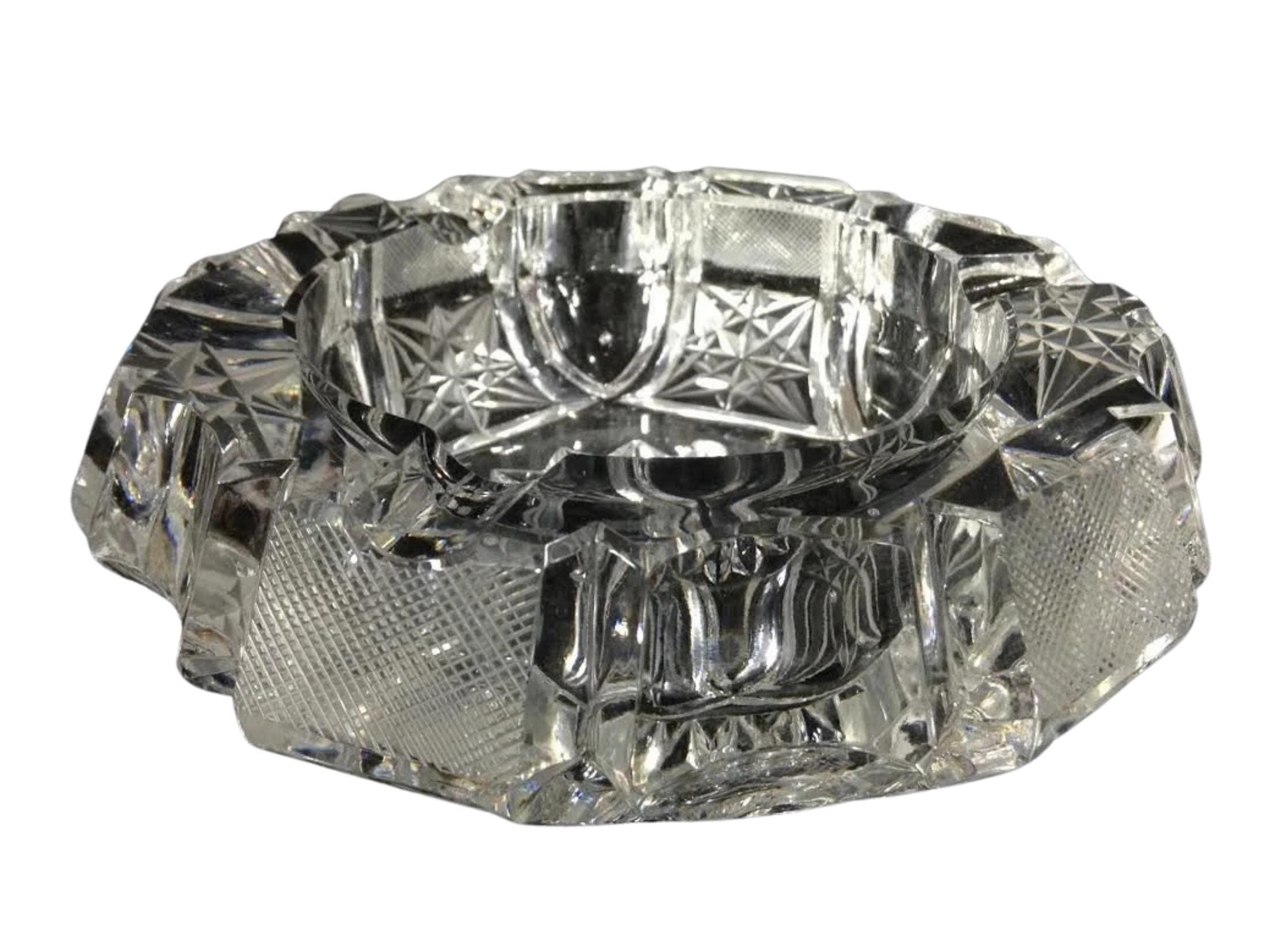 Cool Gifts For Guys Vintage Cut Crystal Ashtray: Hob Star & Waffle Pattern Glassware