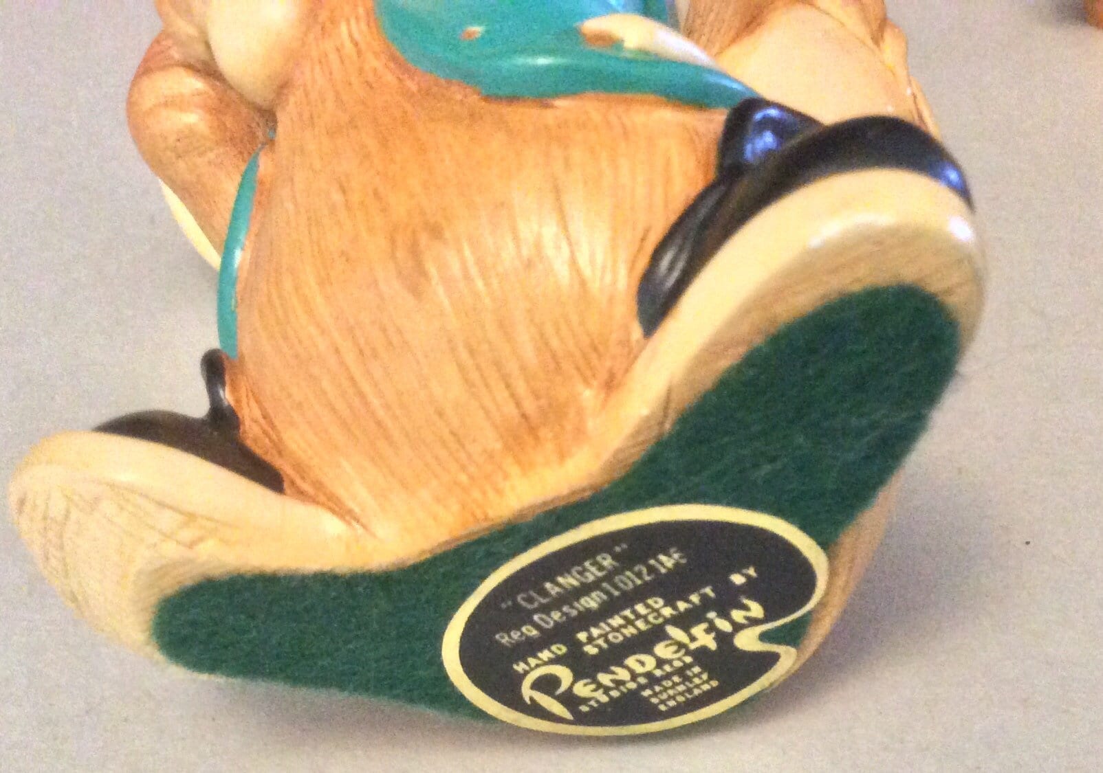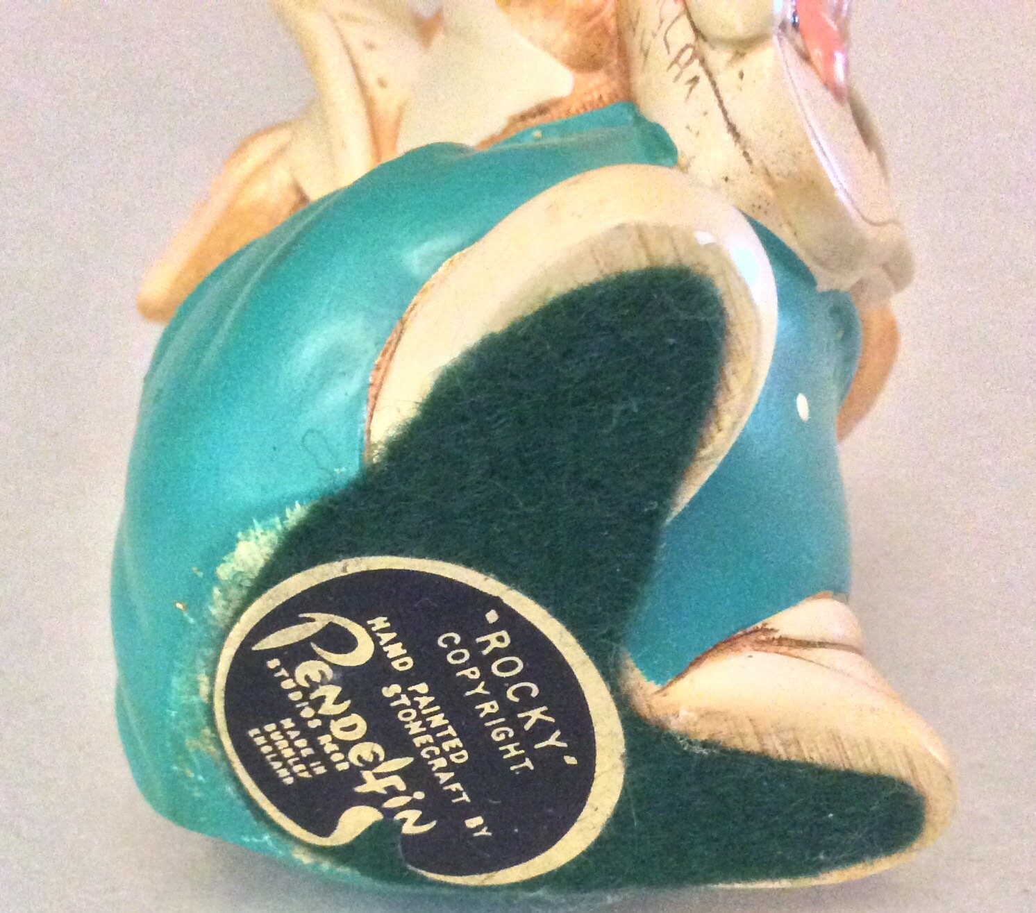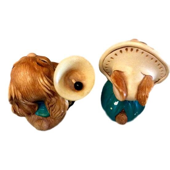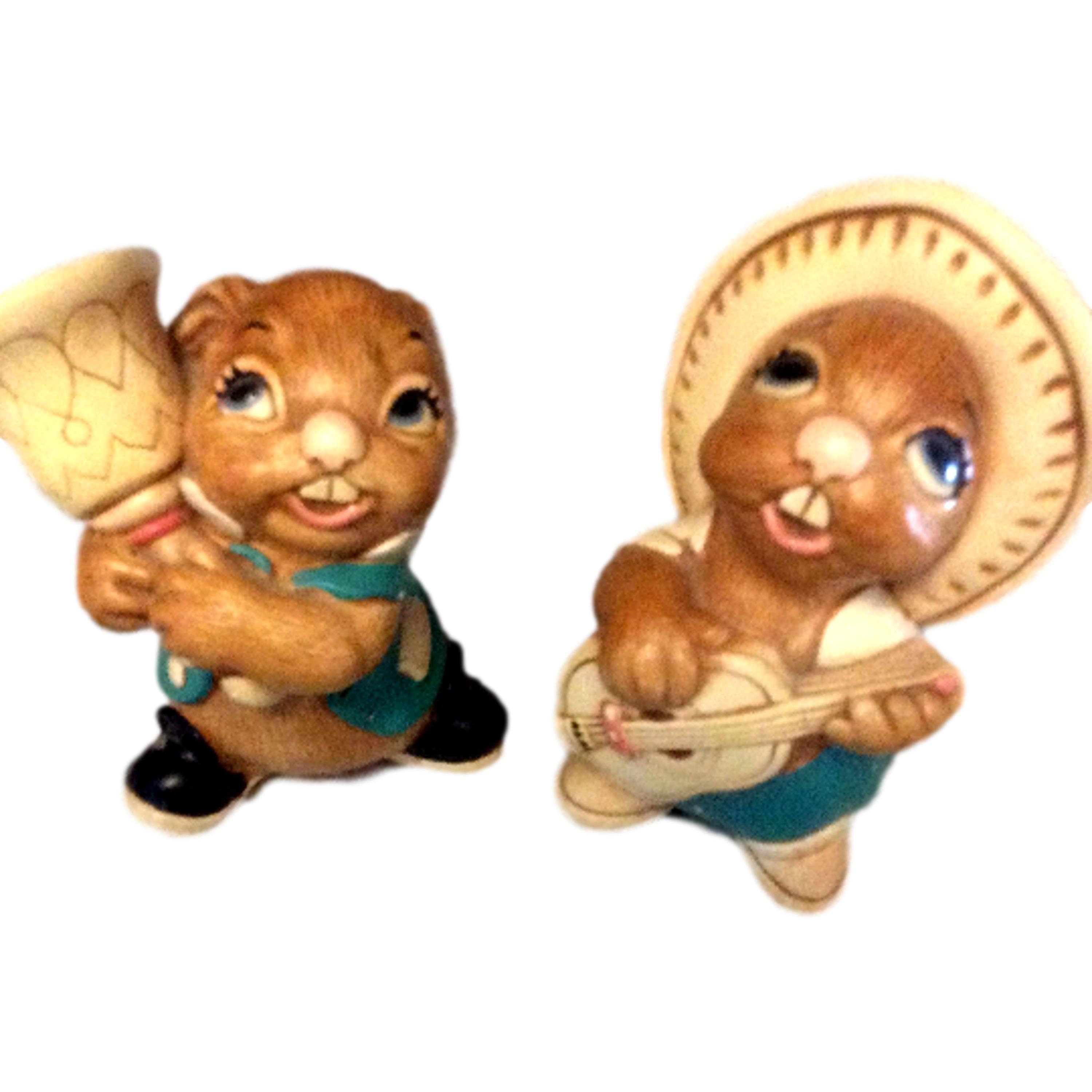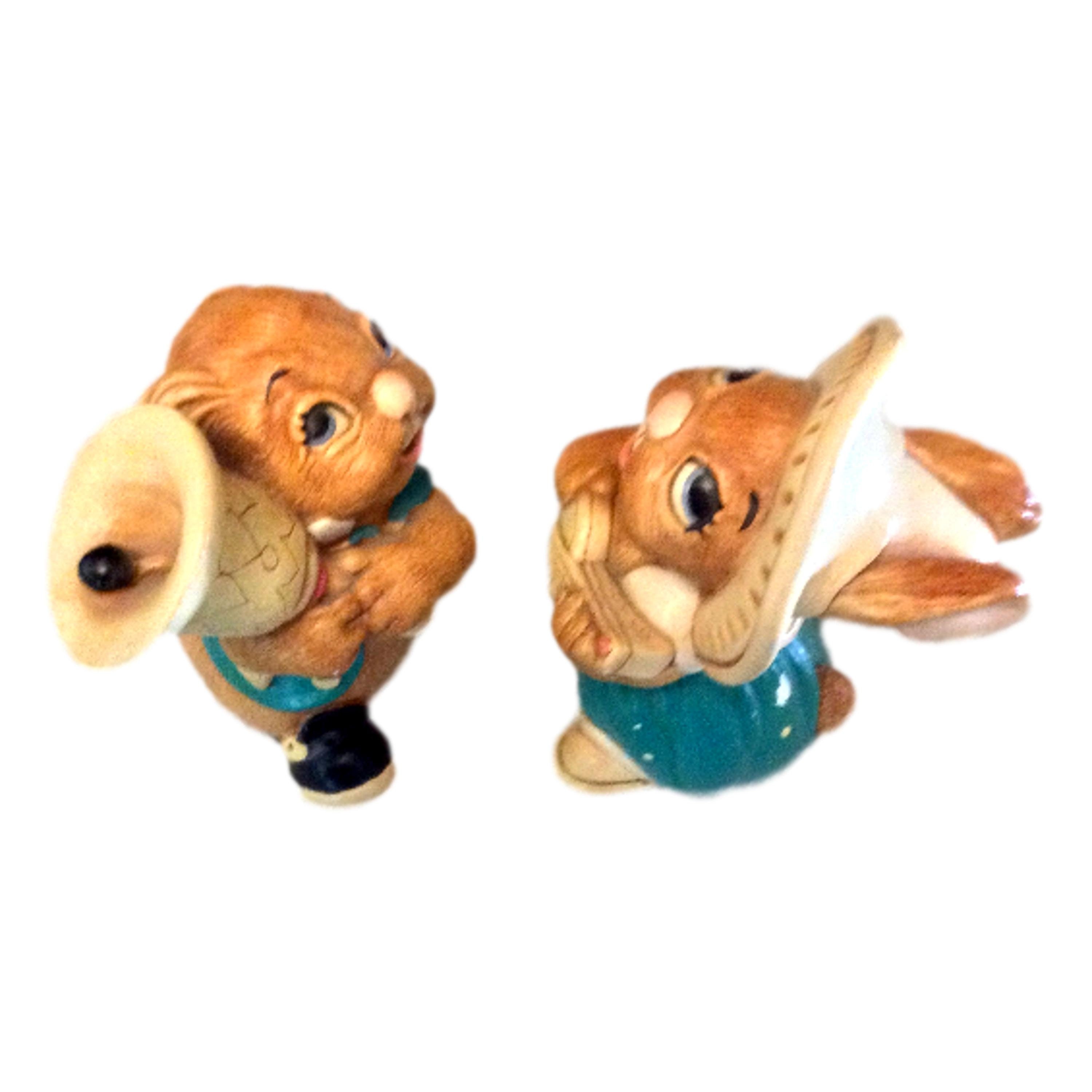 Set of 2 Pendefin bunnies, handpainted stone craft bunny figurines. The vintage rabbits were made in England. They have some minimal paint loss. These whimsical bunnies include Rocky, 1959 measures 4” high and Clanger, 1983, 3.5” high.