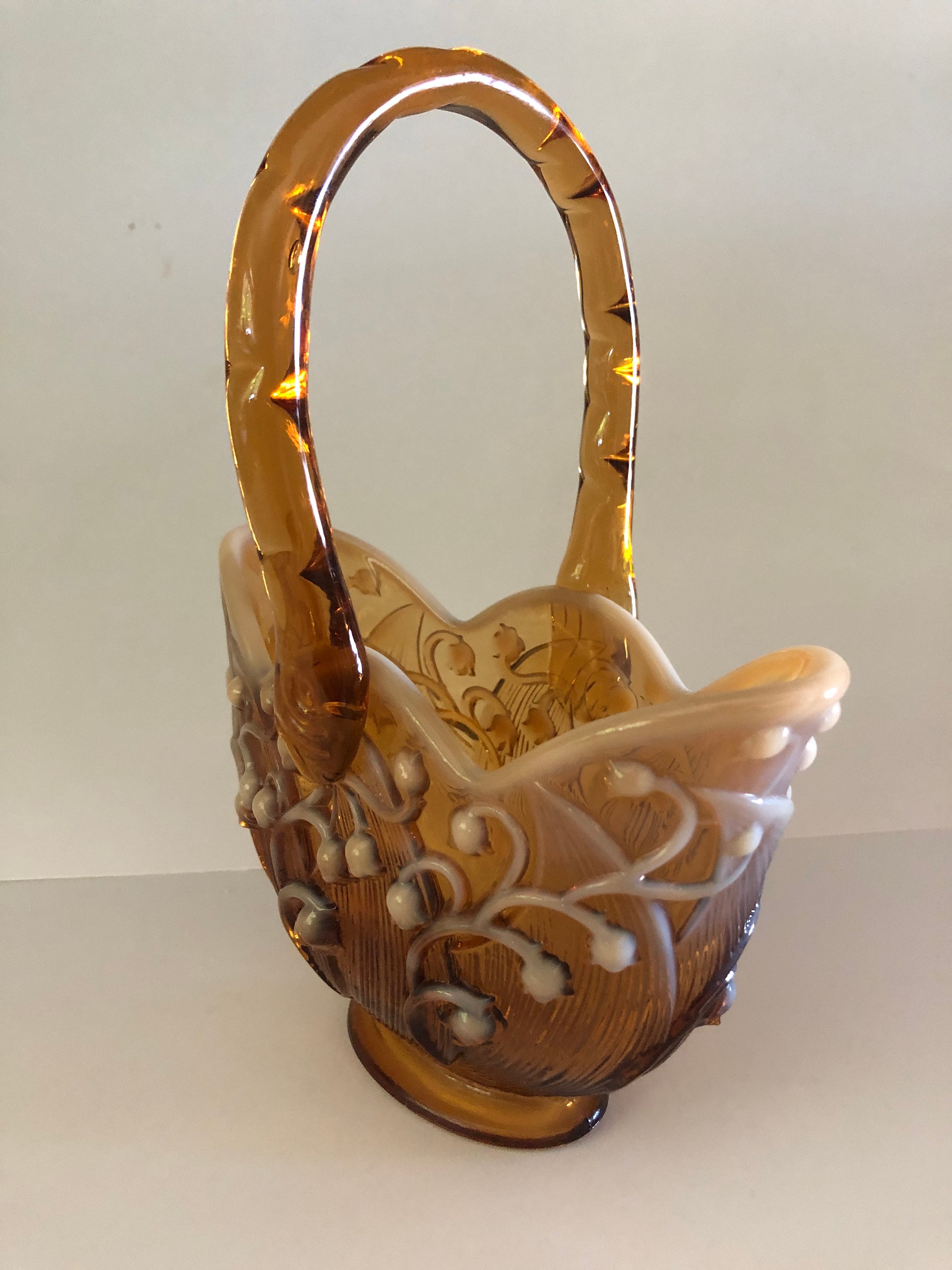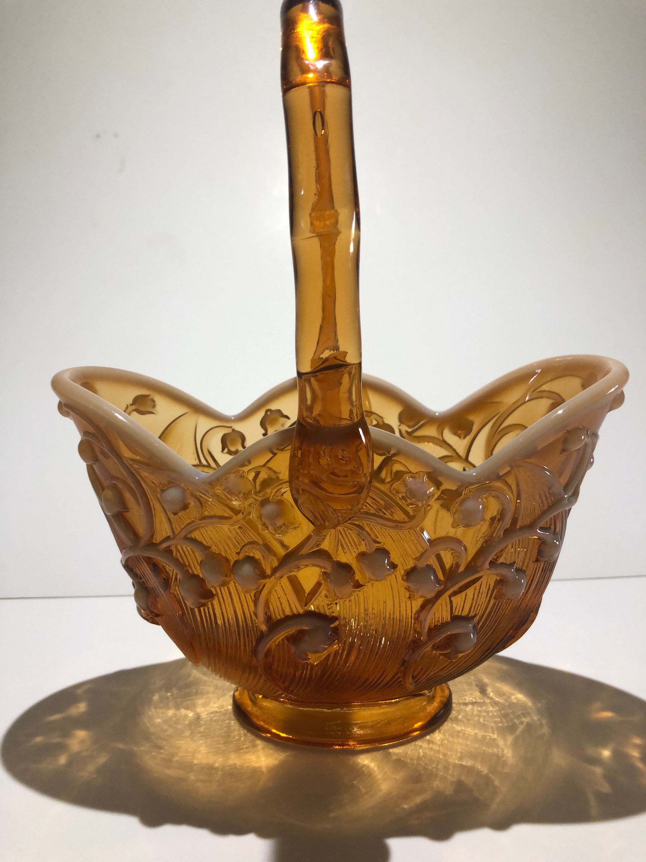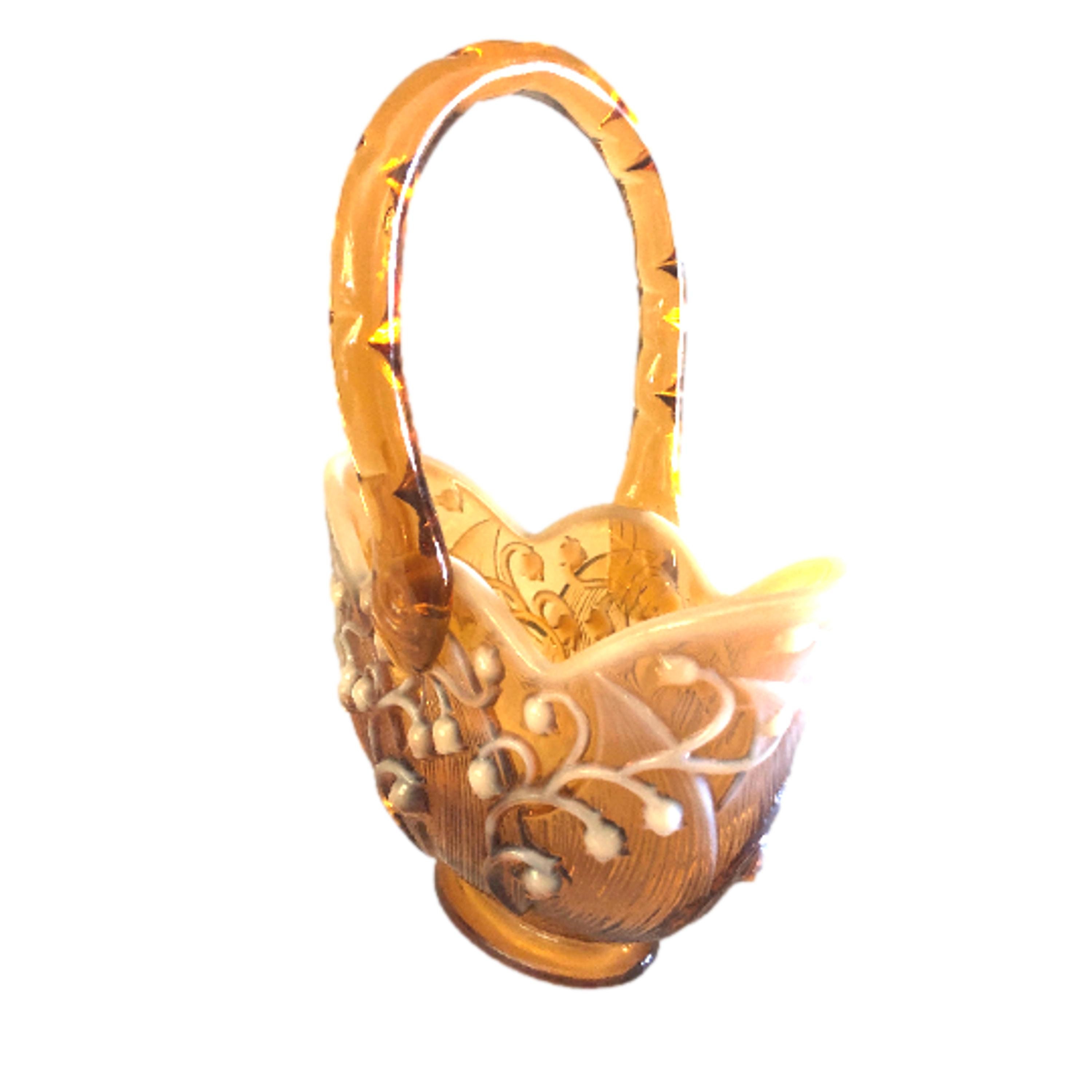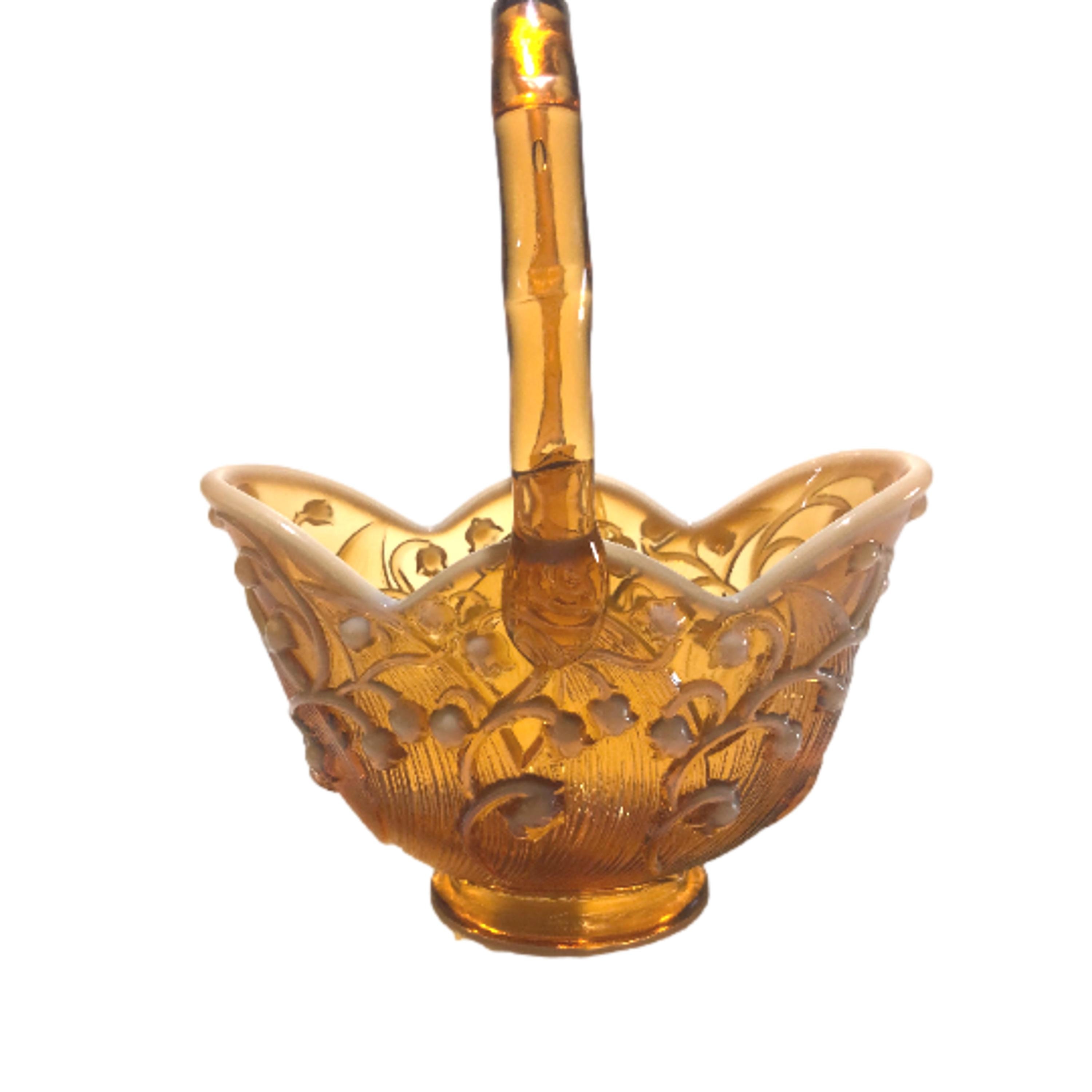 Lily of the Valley Fenton Art Glass Amber Cameo Basket | Vintage Floral Collectible Decor Gift